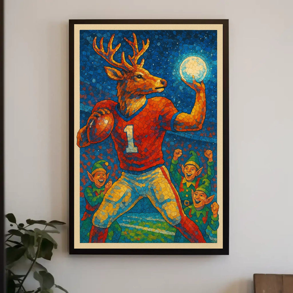 Printed with precision and made to inspire, this artwork is more than decoration—it’s a conversation piece that connects imagination, whimsy, and style. Bring the Reindeer Quarterback Fantasy Poster into your home, classroom, or office today and let your walls tell a powerful story.
