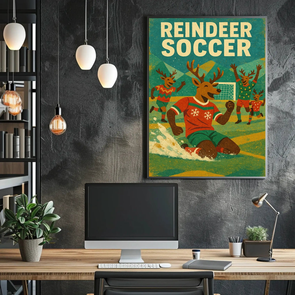 Printed with precision and made to inspire, this artwork is more than decoration—it’s a conversation piece that connects nature, sport, and whimsy. Bring Reindeer Soccer Extravaganza into your home, classroom, or office today and let your walls tell a playful story.