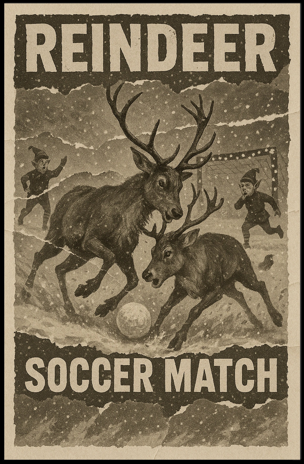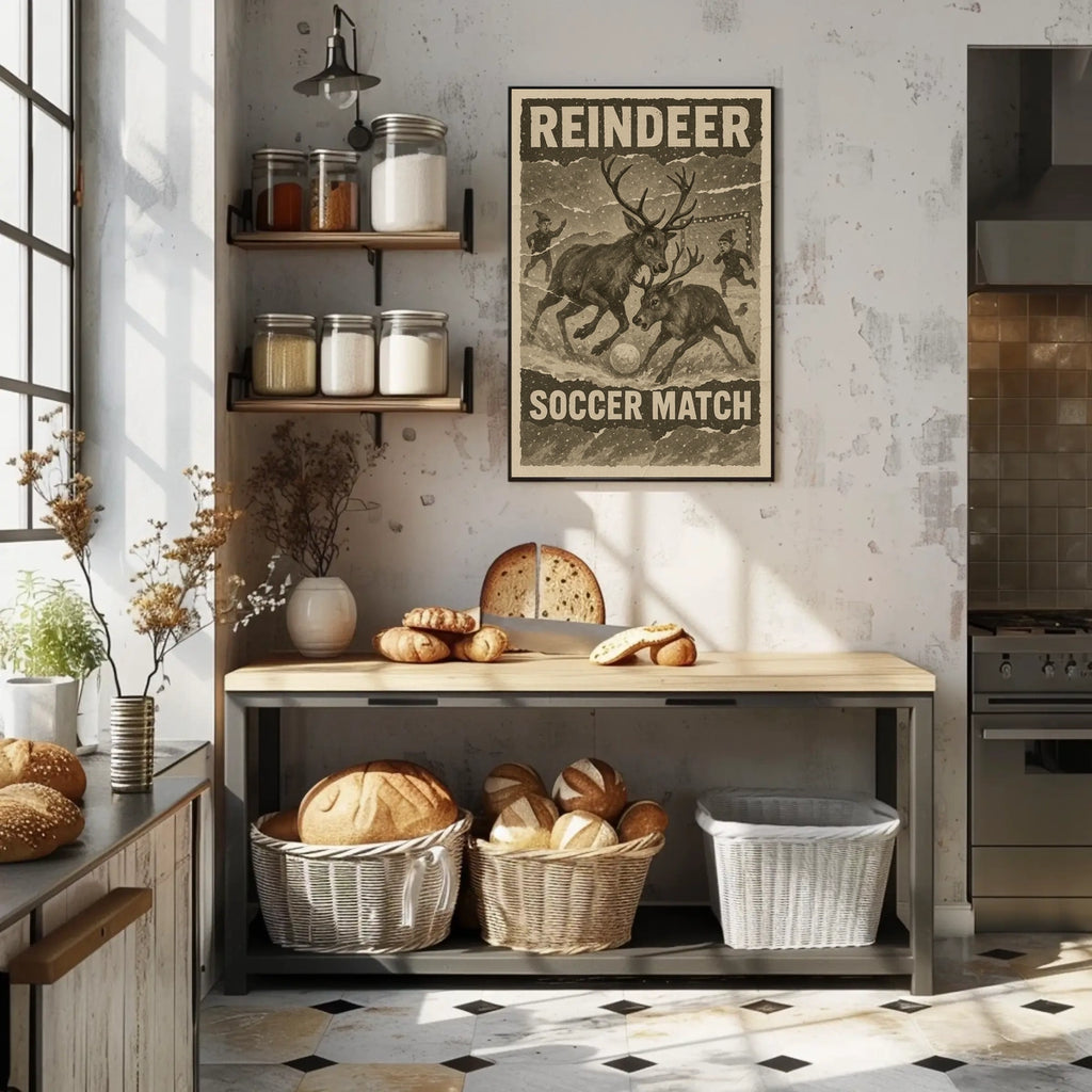 Printed with precision and made to inspire, this artwork is more than decoration—it's a conversation piece that connects holiday spirit and fantasy. Bring the Reindeer Soccer Match Vintage Holiday Poster Print into your home, classroom, or office today and let your walls tell a festive, imaginative story.