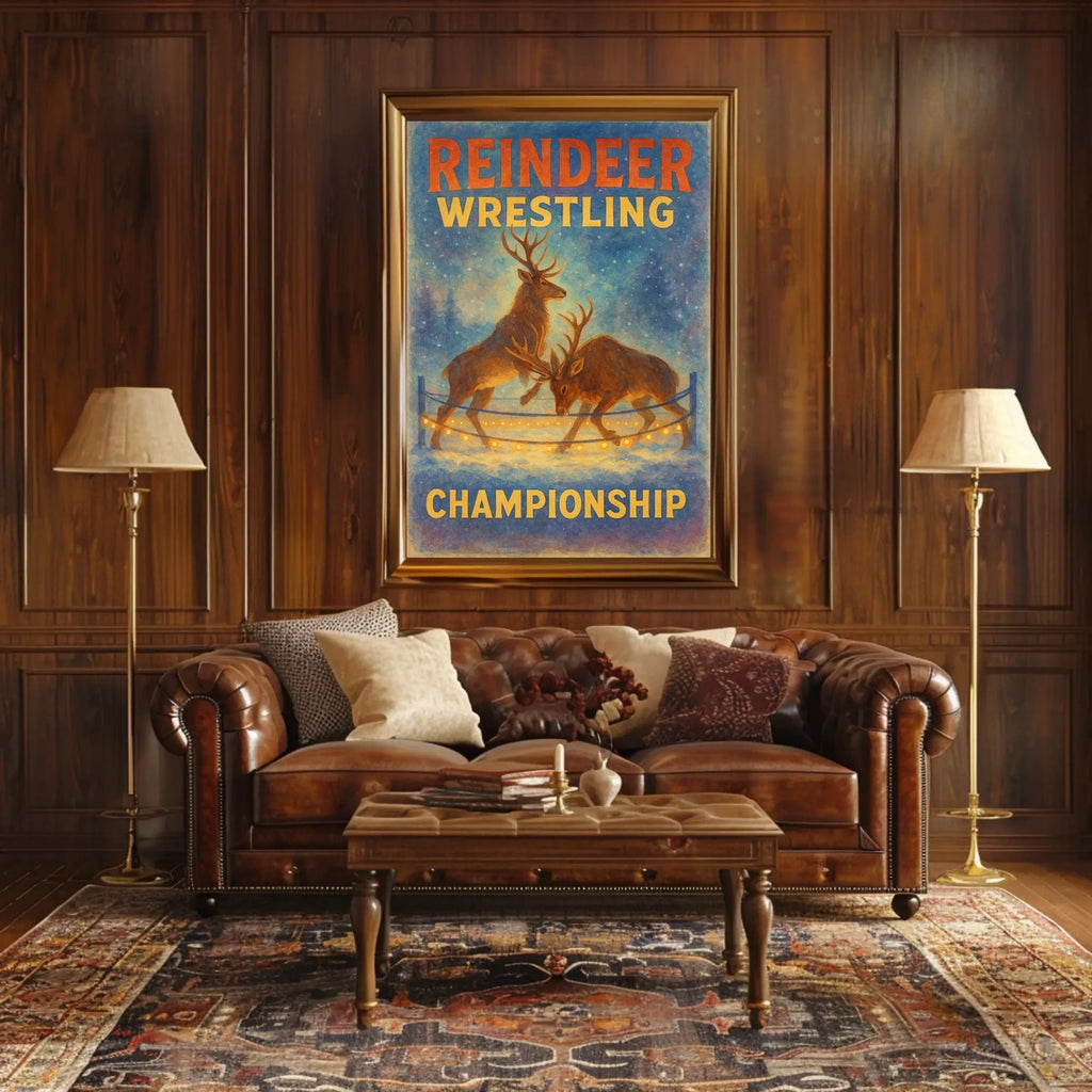 - Printed with precision and made to inspire, this artwork is more than decoration—it's a conversation piece that connects whimsy, winter, and culture. Bring Reindeer Wrestling Championship into your home, classroom, or office today and let your walls tell a powerful story.