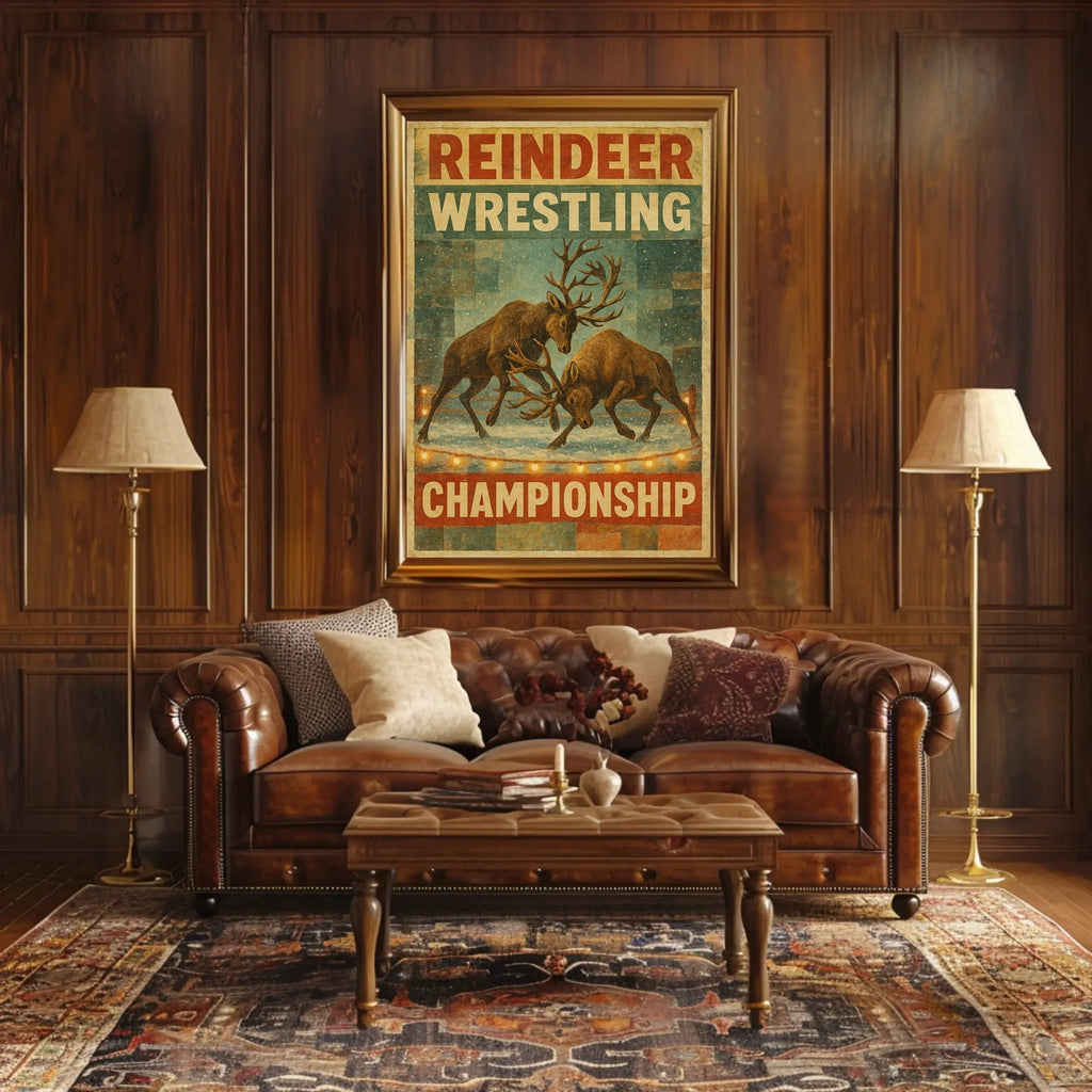 This adventurous design blends circus style print aesthetics with a distressed texture poster to evoke nostalgia and charm. Printed with precision and made to inspire, this artwork is more than decoration—it’s a conversation piece that connects history, culture, and style. Bring Reindeer Wrestling Retro Print into your home, classroom, or office today and let your walls tell a powerful story.
