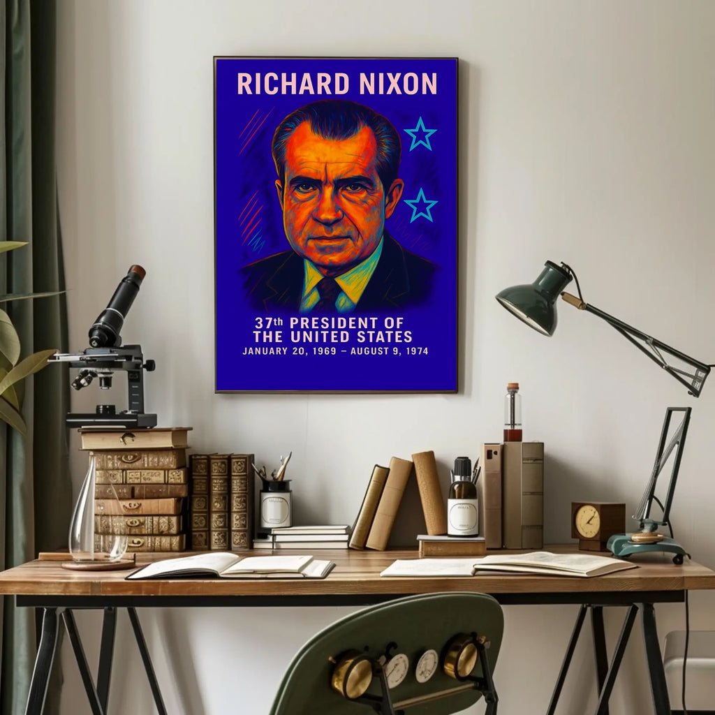 Celebrate a pivotal chapter in history with a stylish Richard Nixon 37th President poster. This decor-forward print blends classic influence with a travel-inspired vibe, making any room feel thoughtful, cultured, and ready for conversation. Designed for decor lovers and wanderlust spirits, it adds a touch of historical intrigue to living spaces, bedrooms, or offices, pairing effortlessly with frames and other wall art.