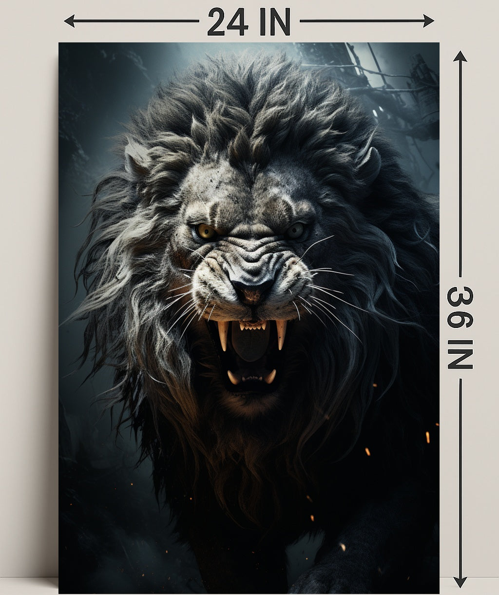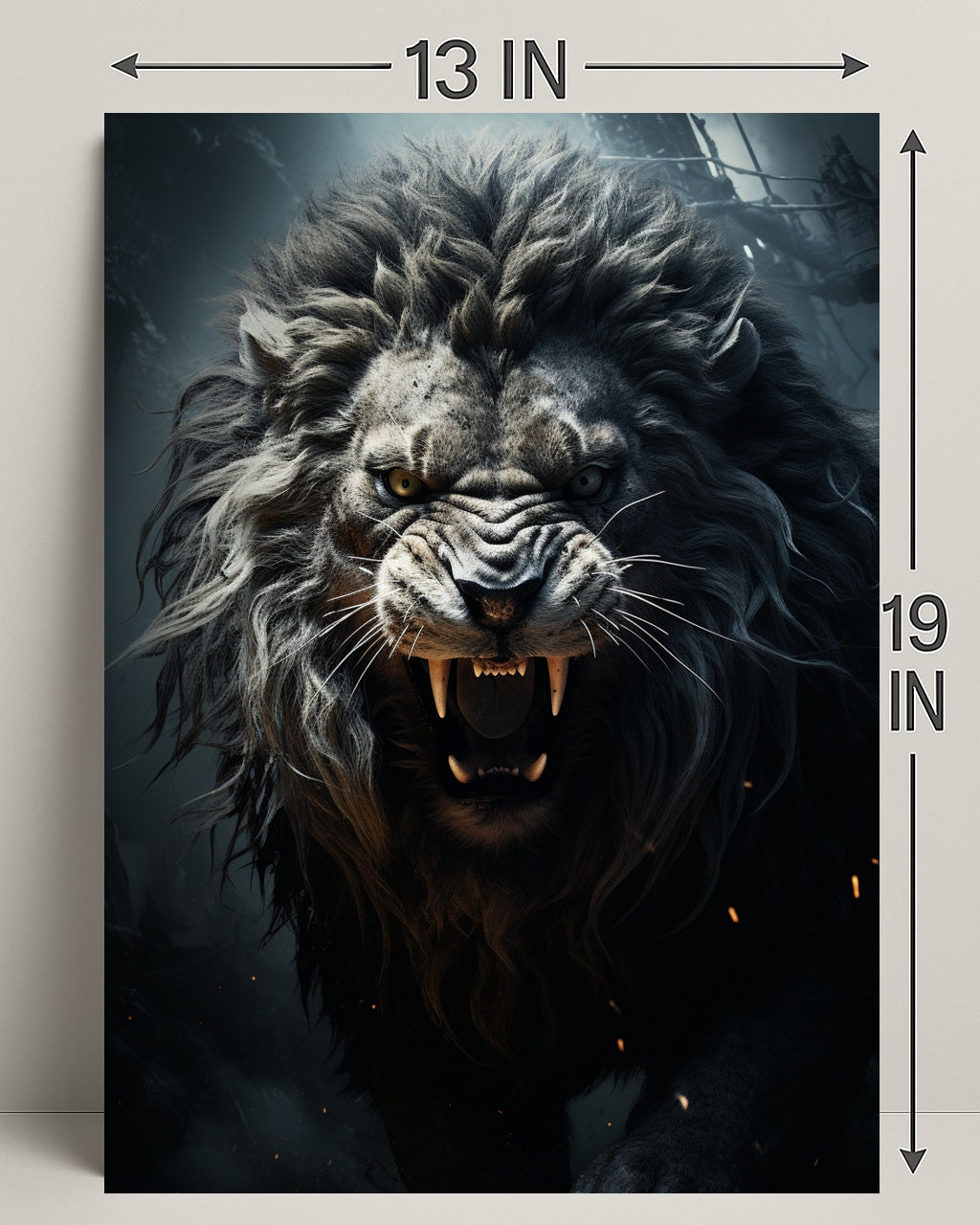 Why choose Roaring Majesty? This poster blends photorealistic detail and dramatic artistic flair to command attention without overwhelming a room. The intense close-up perspective and the lion’s fierce expression make it a conversation starter and a focal anchor for your decor.