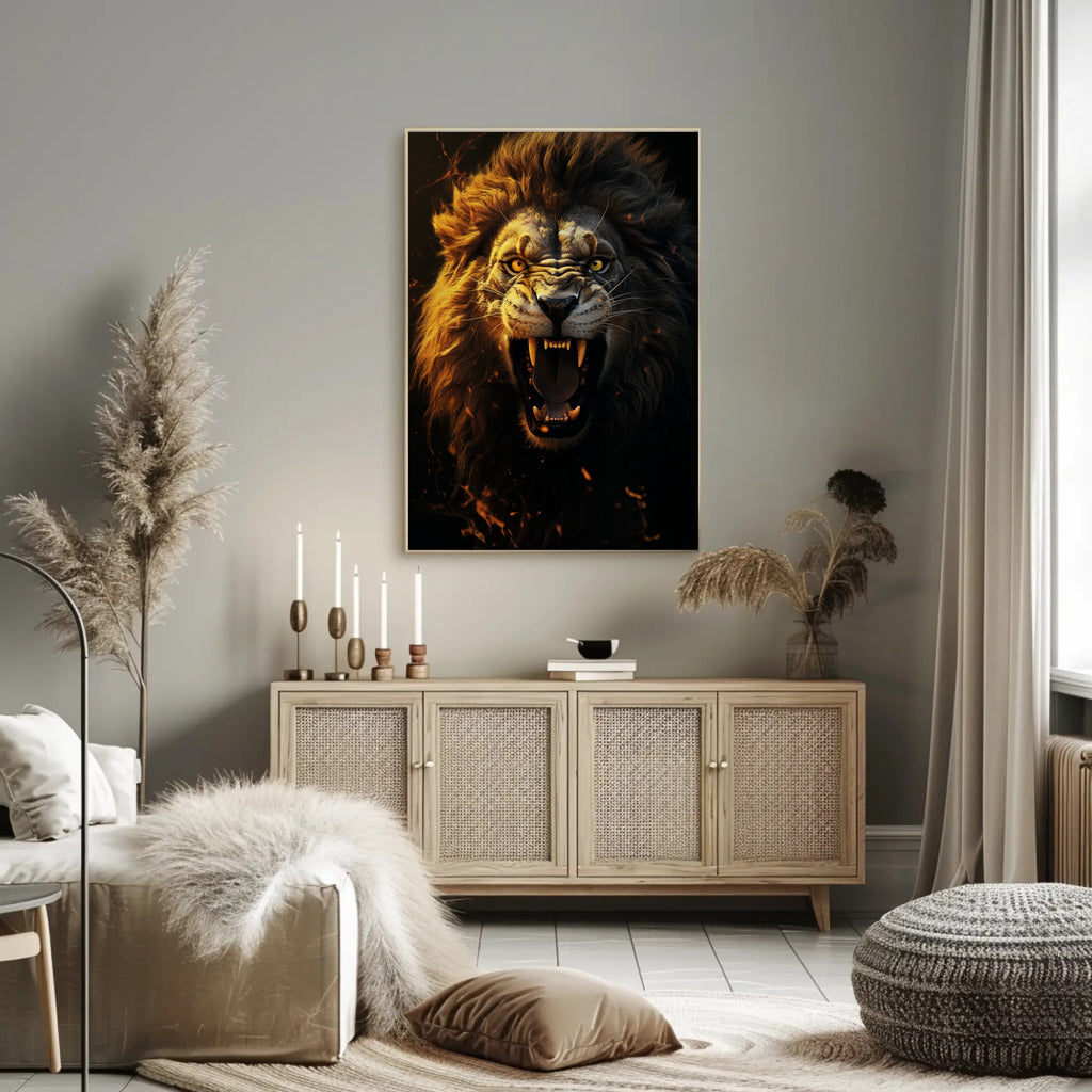 Striking Visuals: Features a mesmerizing image of a roaring lion, showcasing intricate details that draw the eye and elevate your decor.