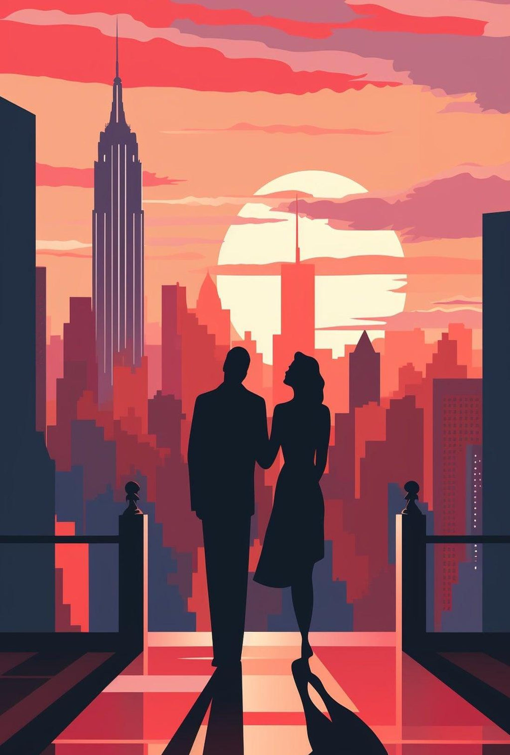 This Romantic Skyline Silhouette poster works as a centerpiece in any Home & Garden decor collection of Posters, Prints & Visual Artwork — bringing romance, urban elegance and a touch of classic cinema to your walls. Whether you’re decorating a cozy apartment or gifting a couple who loves NYC, this print makes a memorable statement.