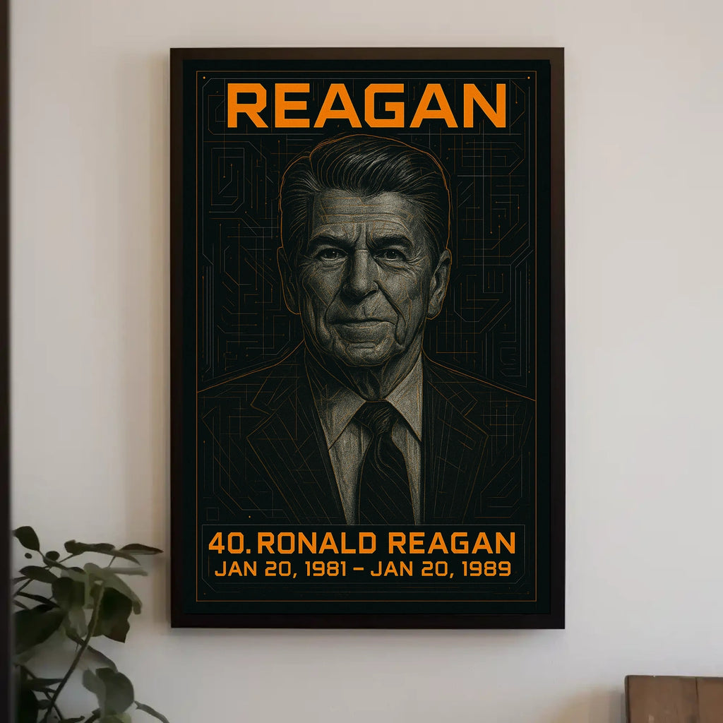 Designed to enhance American politics and history displays, this poster blends a classic portrait with glow art and vintage poster aesthetics, making it an eye-catching addition to any wall art collection. Perfect for USA rooms, study spaces, and offices, it’s a standout piece for collectors and enthusiasts of Ronald Reagan and presidential history.