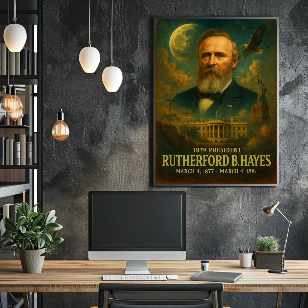 Celebrate the beauty of Rutherford B. Hayes 19th President of the United States Presidential Neoclassical Realism Poster with this timeless wall art. Designed to capture its unique appeal, this piece is perfect for collectors, enthusiasts, or anyone who wants to bring meaning and inspiration into their space.