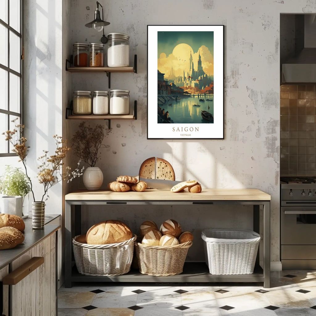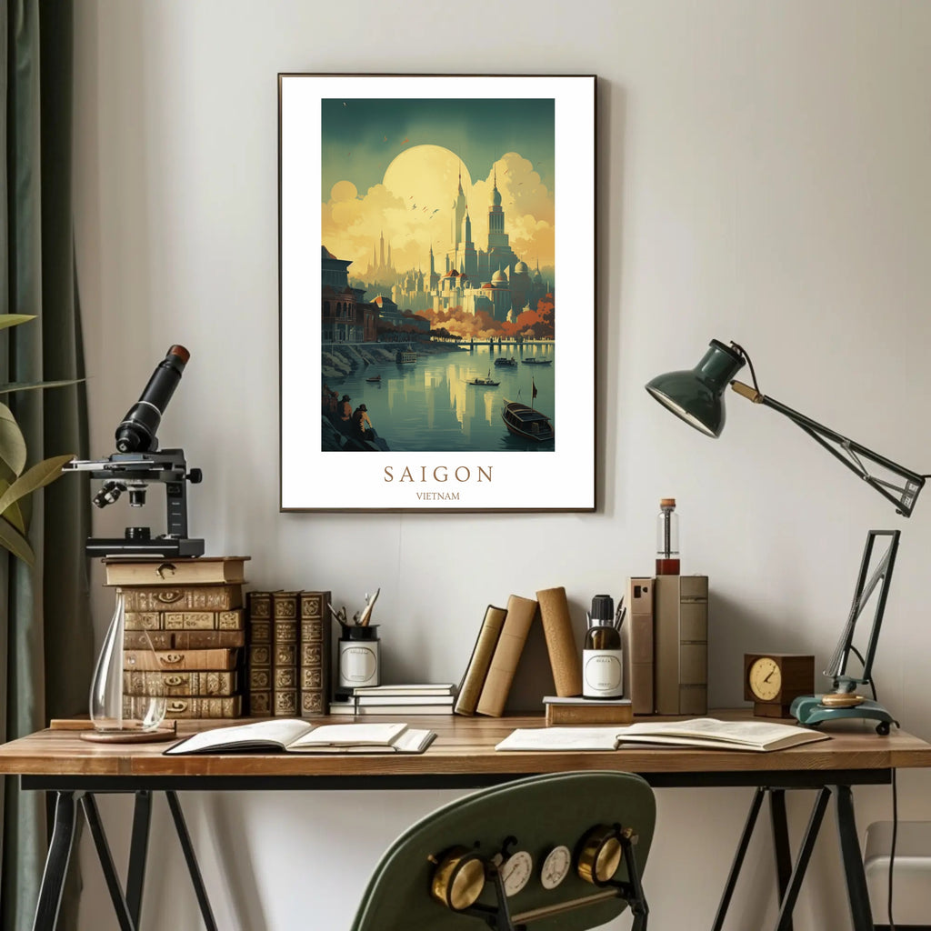 This poster captures the essence of Saigon Skyline. Designed for decor lovers and wanderlust spirits, this art print adds charm to any room with visuals inspired by real-world scenery.