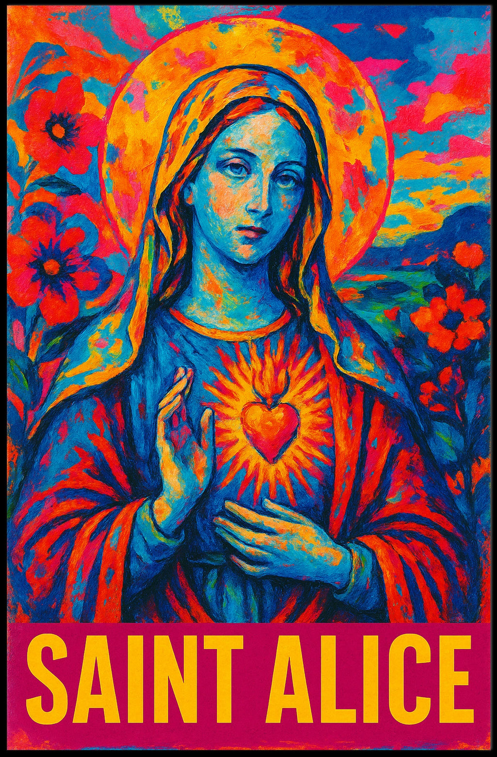 This poster captures the essence of Saint Alice, blending reverent imagery with travel-inspired charm. It’s the perfect companion for living spaces, study nooks, or office walls, turning any area into a conversation about art, culture, and exploration. Ideal for fans of scenic, thoughtful wall art and for gift-givers seeking a meaningful keepsake.