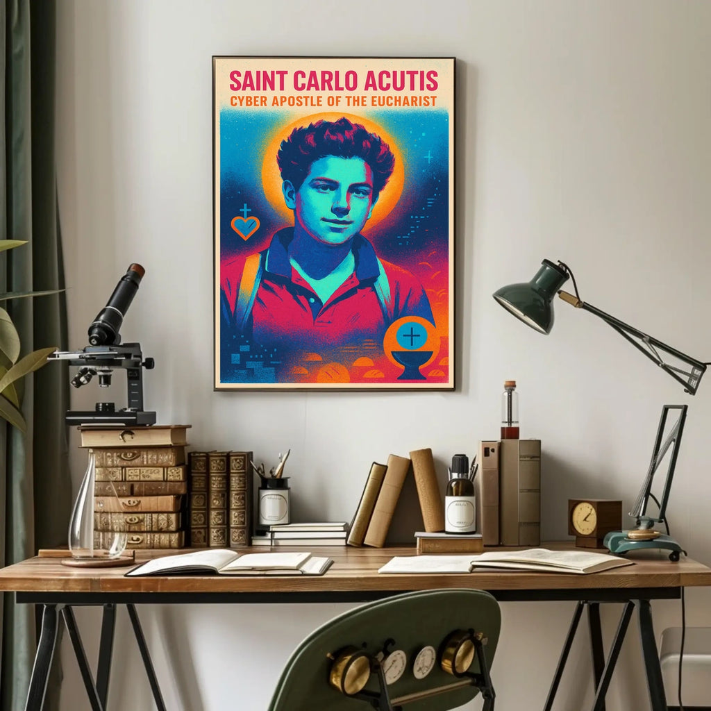 Intro: This Saint Carlo Acutis Cyber Apostle of the Eucharist poster blends reverent faith with modern artistry. Designed for decor lovers and wanderlust spirits, it brings spiritual focus and worldly charm to any room through cinematic scenes inspired by real-world scenery.