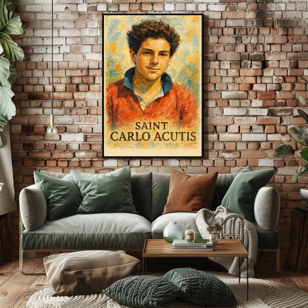 - Printed with precision and made to inspire, this artwork is more than decoration—it’s a conversation piece that connects faith, history, and style. Bring Saint Carlo Acutis into your home, classroom, or office today and let your walls tell a powerful story.