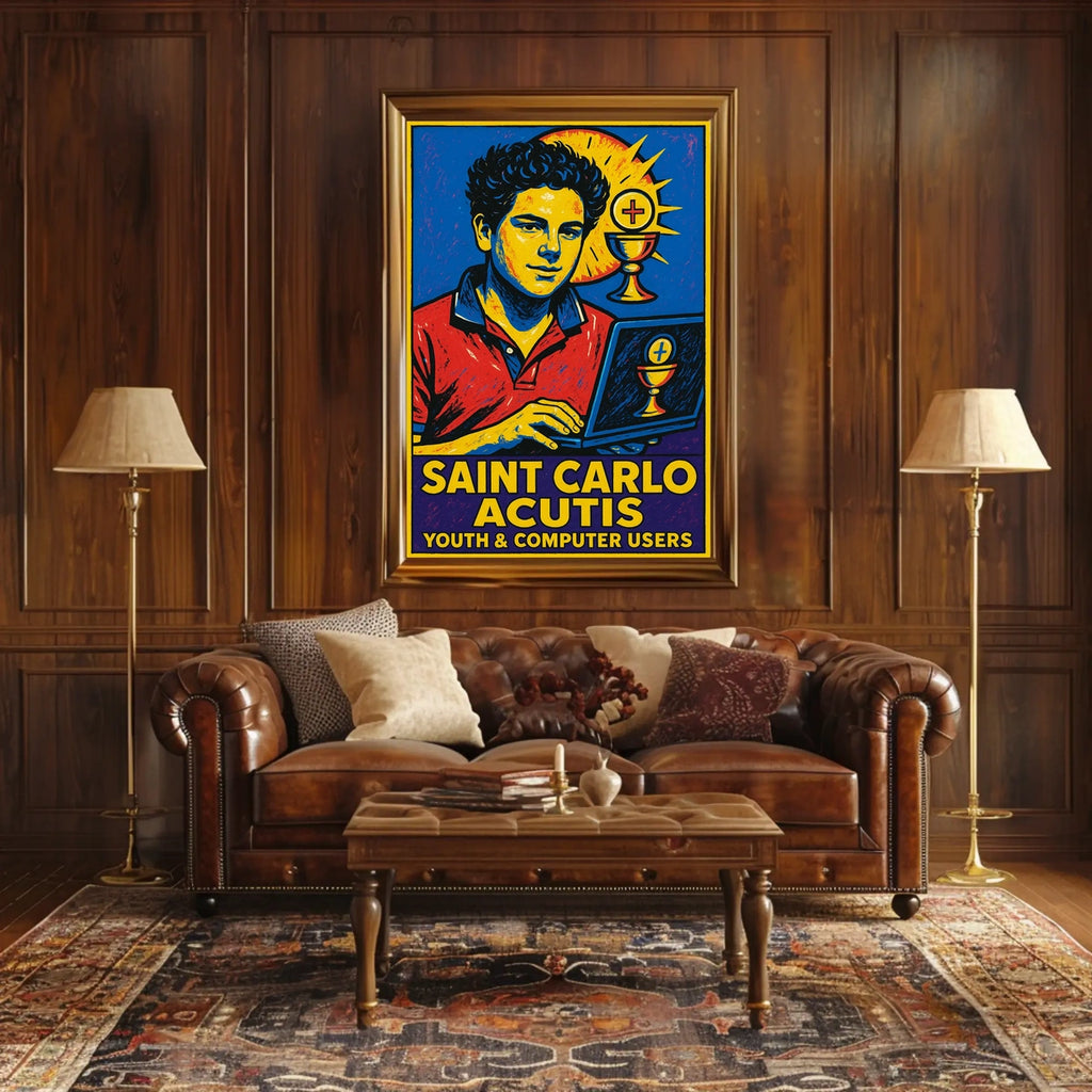- Printed with precision and made to inspire, this artwork is more than decoration—it’s a conversation piece that connects history, culture, and style. Bring Saint Carlo Acutis Youth Computer Users into your home, classroom, or office today and let your walls tell a powerful story.