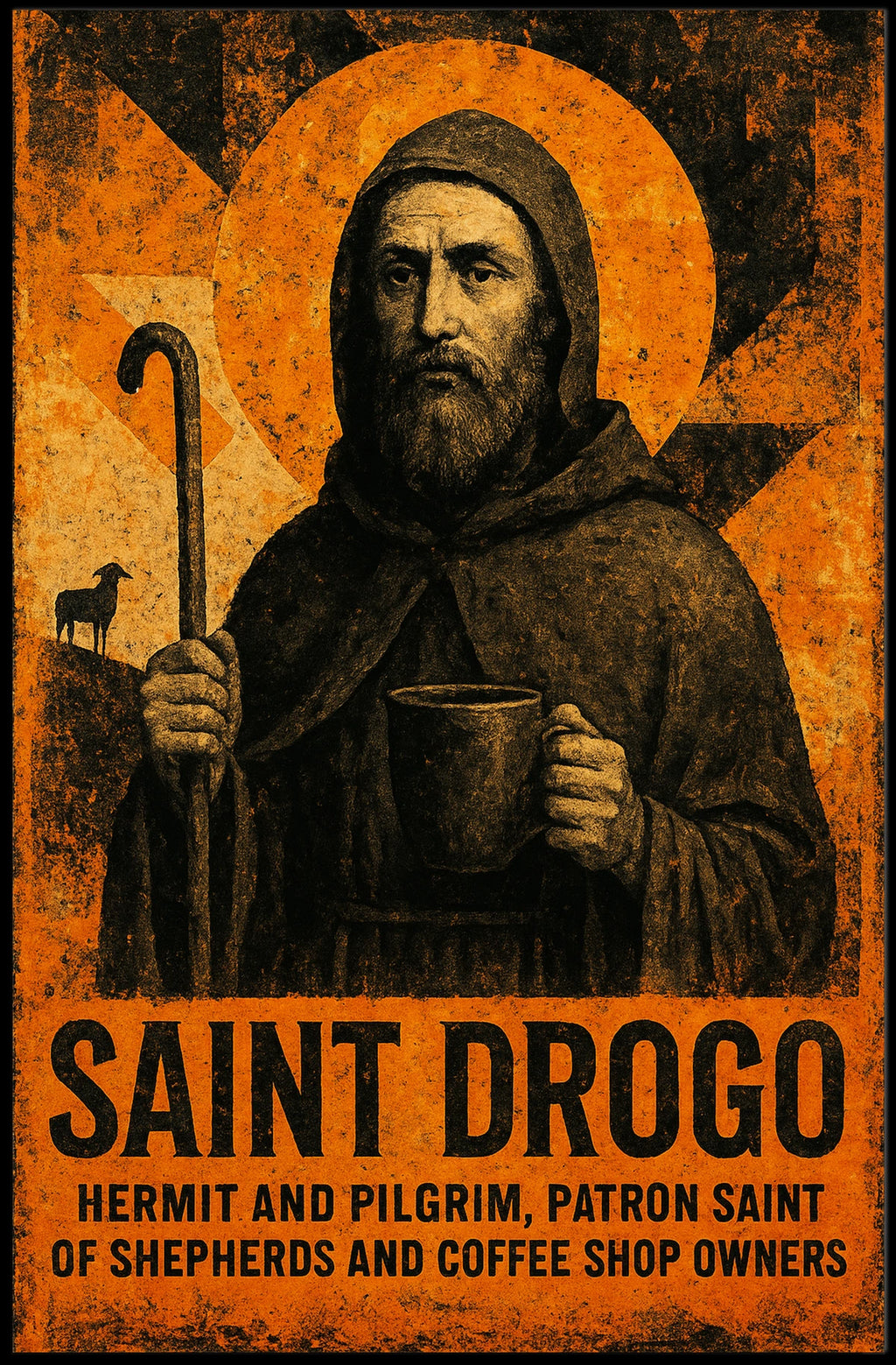 - Detailed design highlighting sacred iconography and Saint Drogo's traditional symbolism
