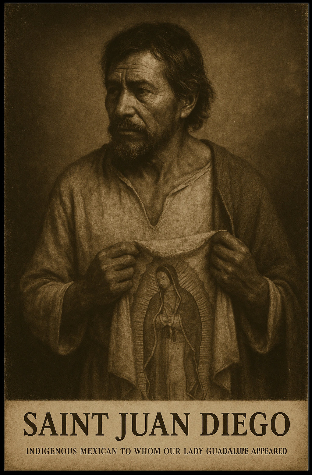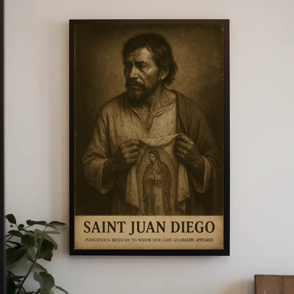 Saint Juan Diego Poster Celebrate the beauty of Saint Juan Diego with this timeless wall art. This poster captures the essence of Saint Juan Diego, designed for decor lovers and wanderlust spirits, and adds charm to any room with visuals inspired by real-world scenery.