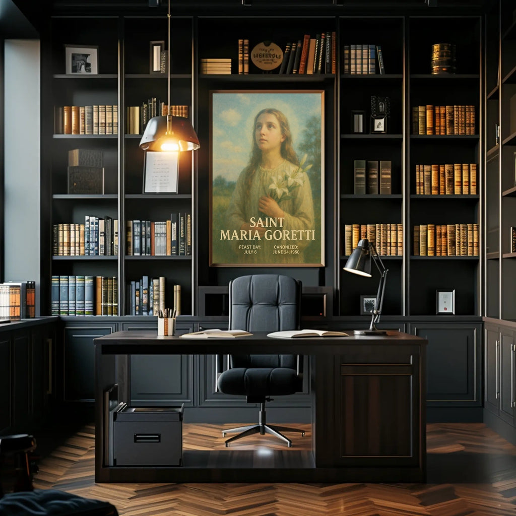 - Printed with precision and made to inspire, this artwork is more than decoration—it’s a conversation piece that connects history, culture, and style. Bring Saint Maria Goretti into your home, classroom, or office today and let your walls tell a powerful story.