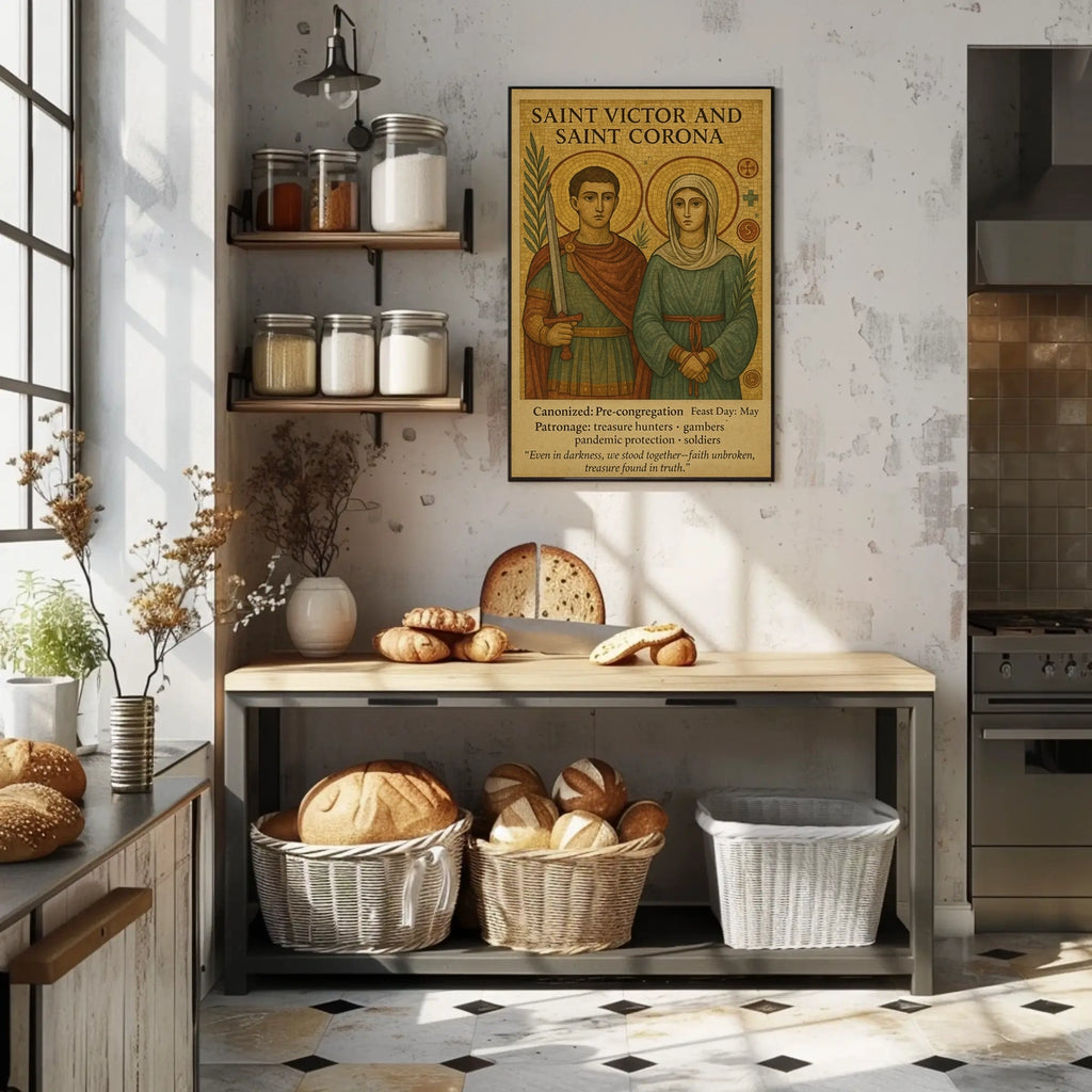Introducing the Saint Victor And Saint Corona Poster — a unique fusion of sacred symbolism and wanderlust-inspired scenery that enhances any room. This art print invites reflection while adding a touch of worldly charm to your decor, perfect for gallery walls, bedrooms, or living spaces.