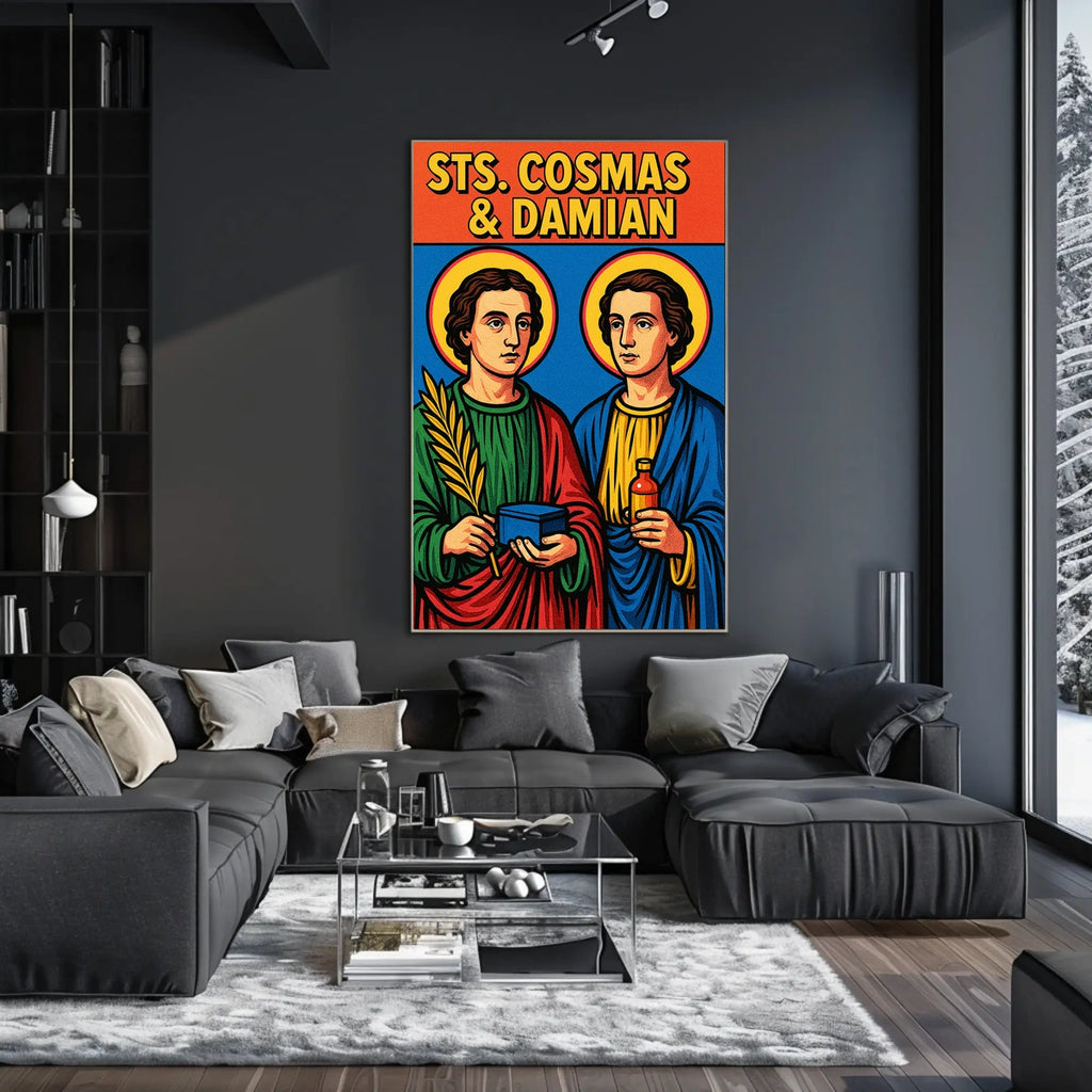 Printed with precision and made to inspire, this artwork is more than decoration—it’s a conversation piece that connects history, culture, and style. Bring Saints Cosmas and Damian into your home, classroom, or office today and let your walls tell a powerful story.