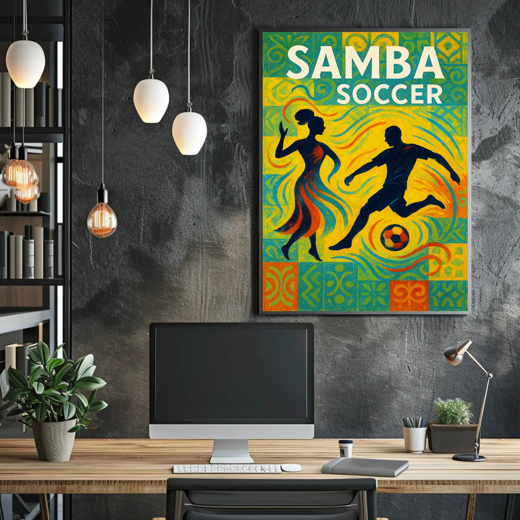 Whether you love soccer, travel, or bold, cultural art, this poster adds charm and movement to any room. Ready to hang and designed to impress — order your Samba Soccer Poster from PosterGoat today and transform your wall into a celebration of sport and dance.