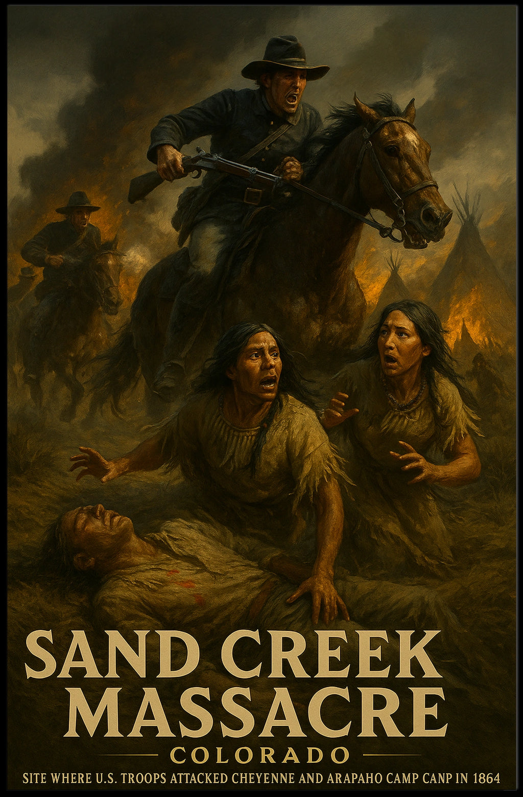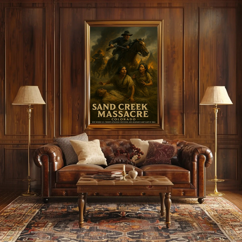Printed with precision and made to inspire, this artwork is more than decoration—it’s a conversation piece that connects history, culture, and style. Bring Sand Creek Massacre Poster into your home, classroom, or office today and let your walls tell a powerful story.