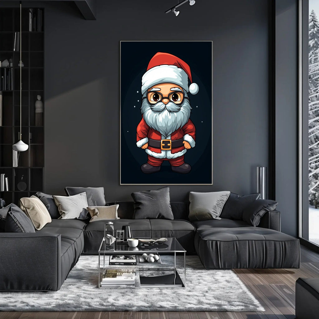 - Detailed design highlighting Santa's playful, exaggerated features — iconic red suit, white fur trim, hat, and glasses