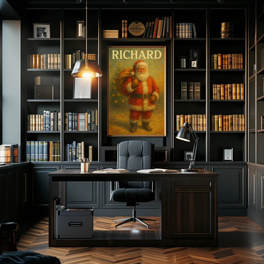 Enhance your holiday decor with this festive art piece that blends vintage Christmas charm with modern print quality. A wonderful addition to living rooms, offices, or retail displays, it serves as a warm Yuletide symbol that resonates with family and guests.