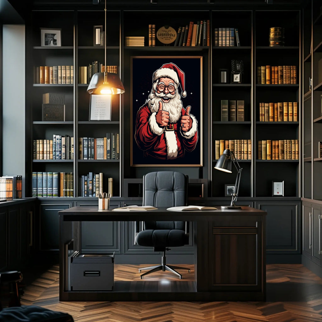 Enhance your festive season with this timeless portrayal of Santa Claus. Bring the Santa Claus Thumbs-Up Christmas Pop Culture Poster into your home, classroom, or office today and let your walls tell a powerful story.