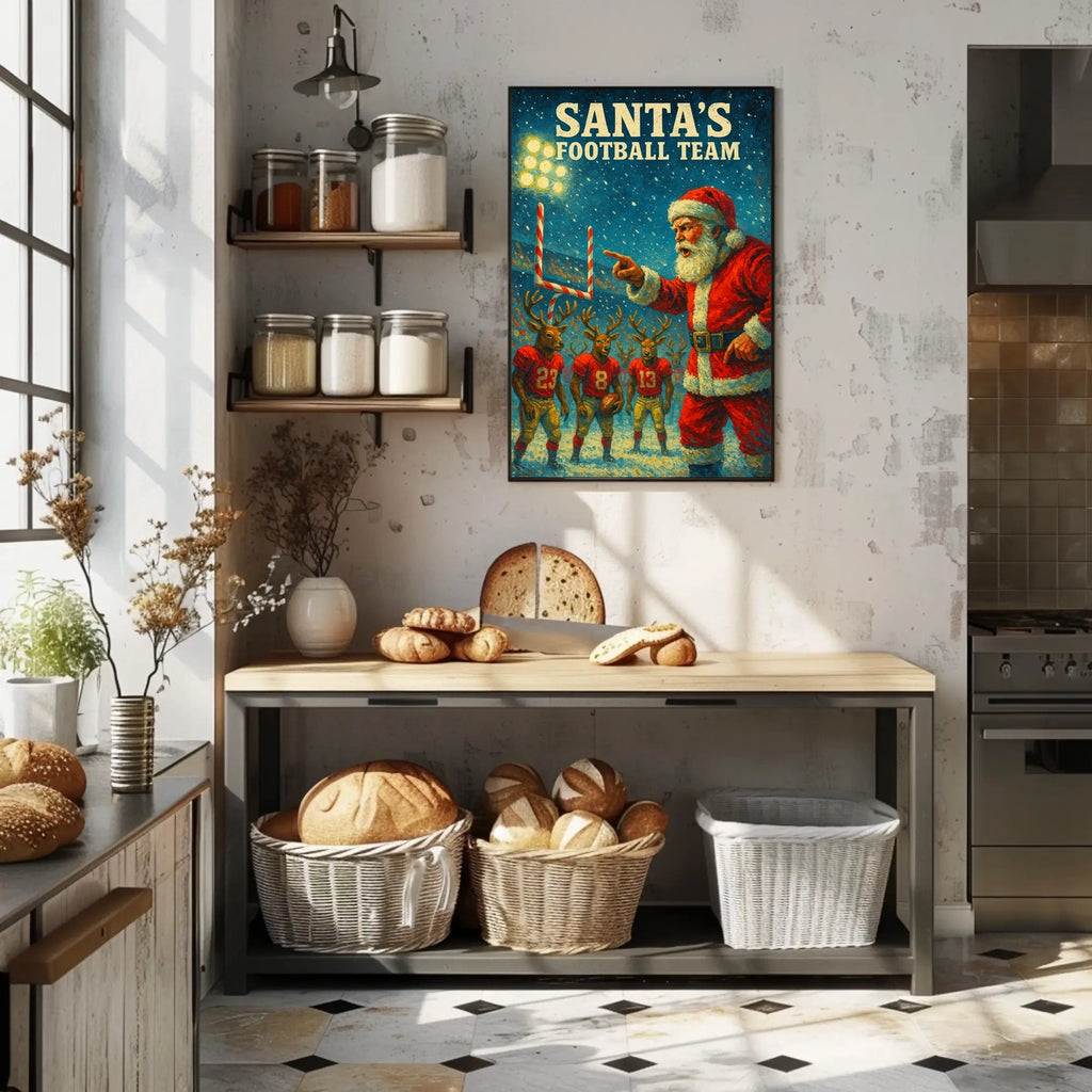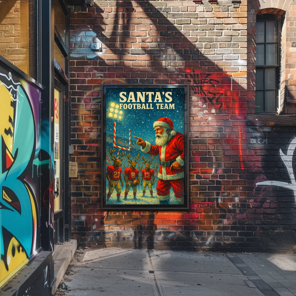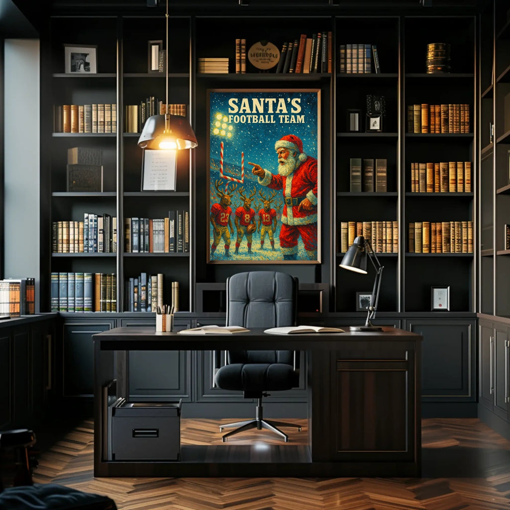 Printed with precision and made to inspire, this artwork is more than decoration—it’s a conversation piece that connects holiday cheer with sports enthusiasm. Add Santa Coaches Reindeer in Festive Football Scene to your home, classroom, or office, and let your walls tell a powerful story of joy, competition, and timeless charm.