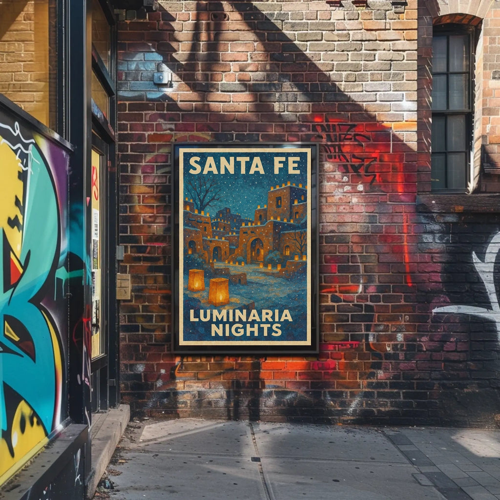 Santa Fe Luminaria Nights Poster celebrates the beauty of Santa Fe's luminaria-lit evenings with a timeless design that enhances any space.