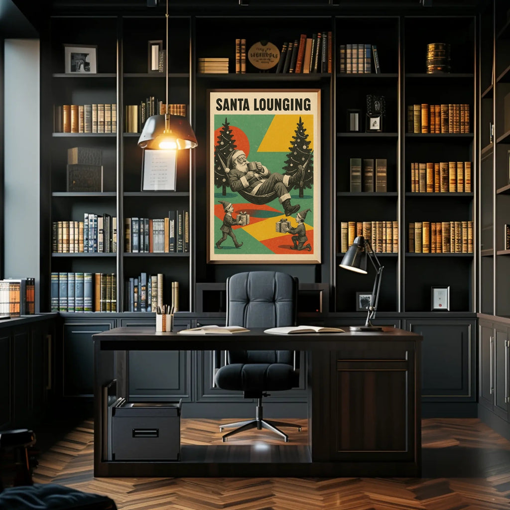Bring this Santa Lounging poster into your home, classroom, or office today and let your walls tell a powerful story. Its cheerful, retro vibe pairs perfectly with mid-century christmas art, nostalgic christmas design, and retro geometric art to enrich any space. A wonderful addition to vintage christmas poster collections and a delightful gift for those who cherish whimsical Christmas scenes.