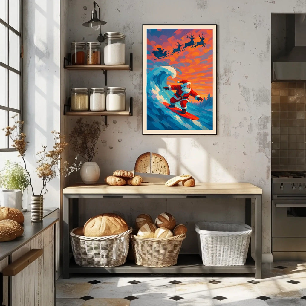 Bring Santa Surfing Christmas Poster into your home, classroom, or office today and let your walls tell a powerful story. This vibrant piece pairs perfectly with beach Christmas theme, cartoon Christmas art, cheerful Christmas wall art, holiday wall art, imaginative holiday poster, and whimsical Santa Claus vibes, making it an ideal addition to any festive display.