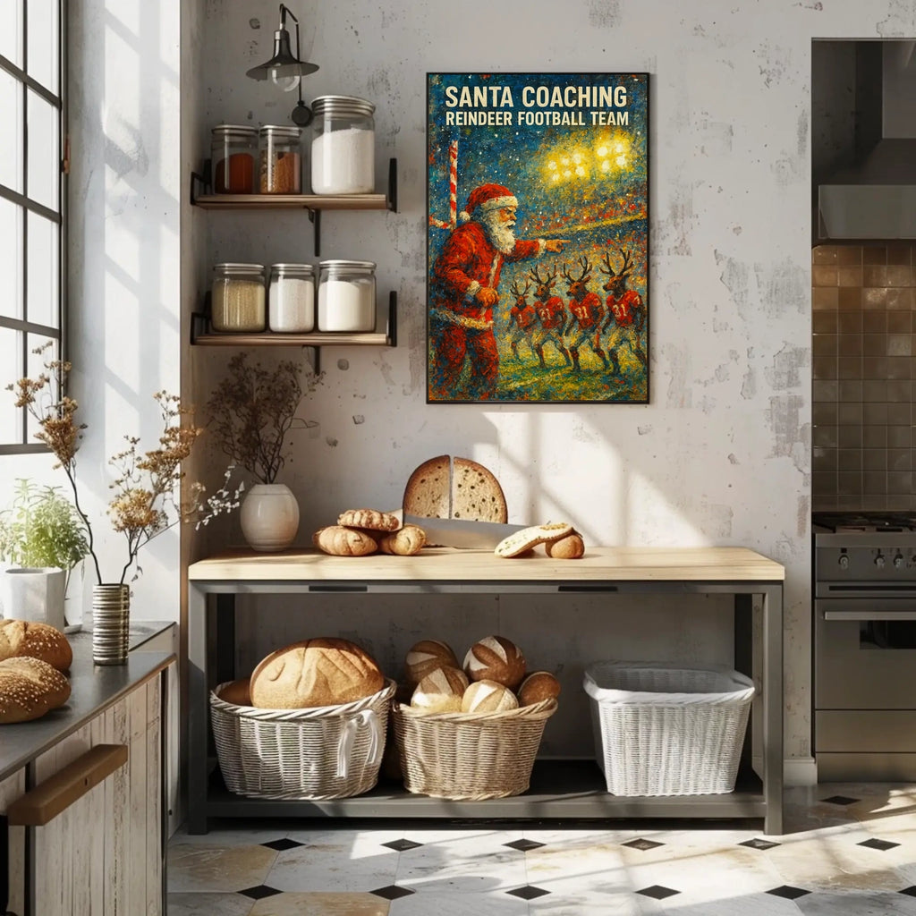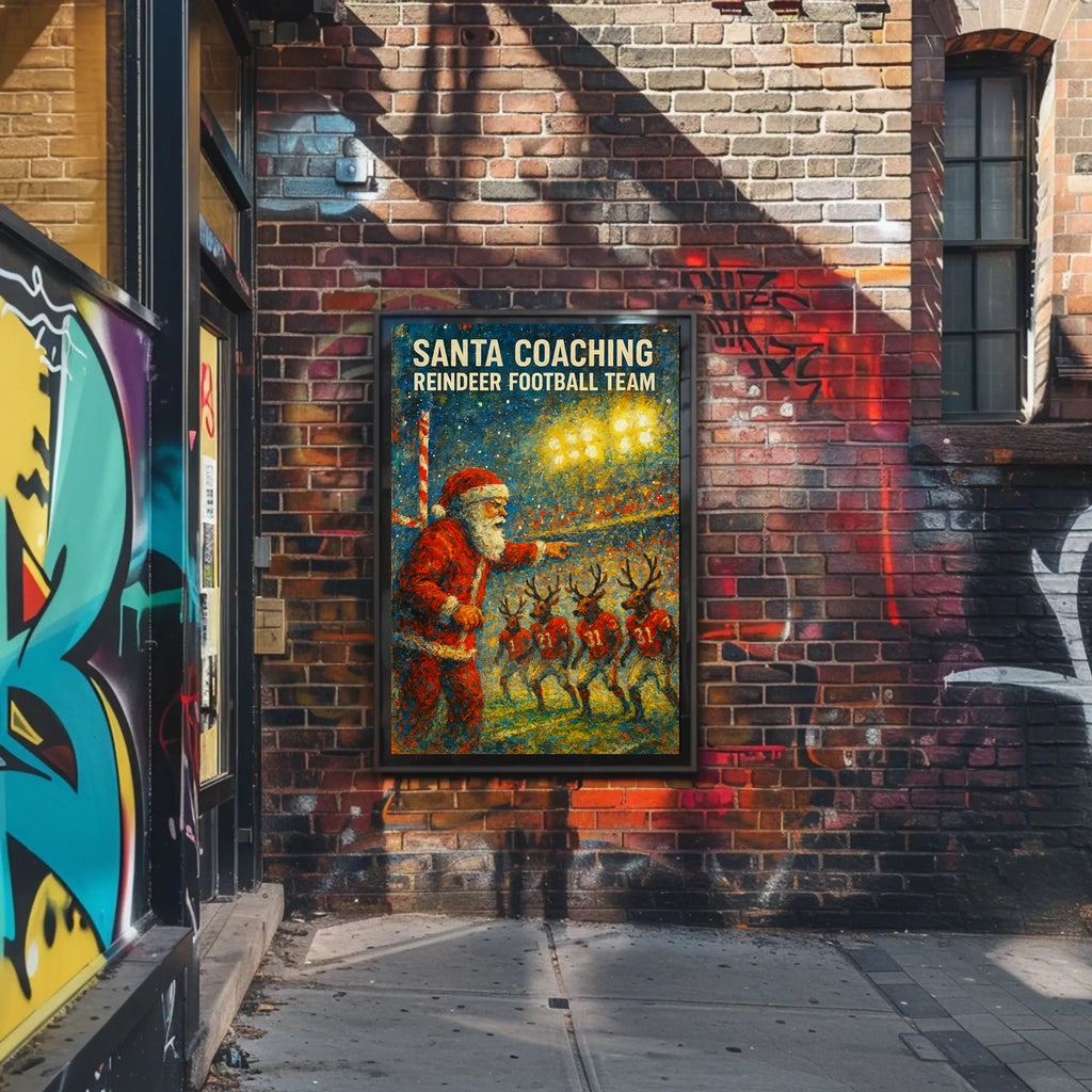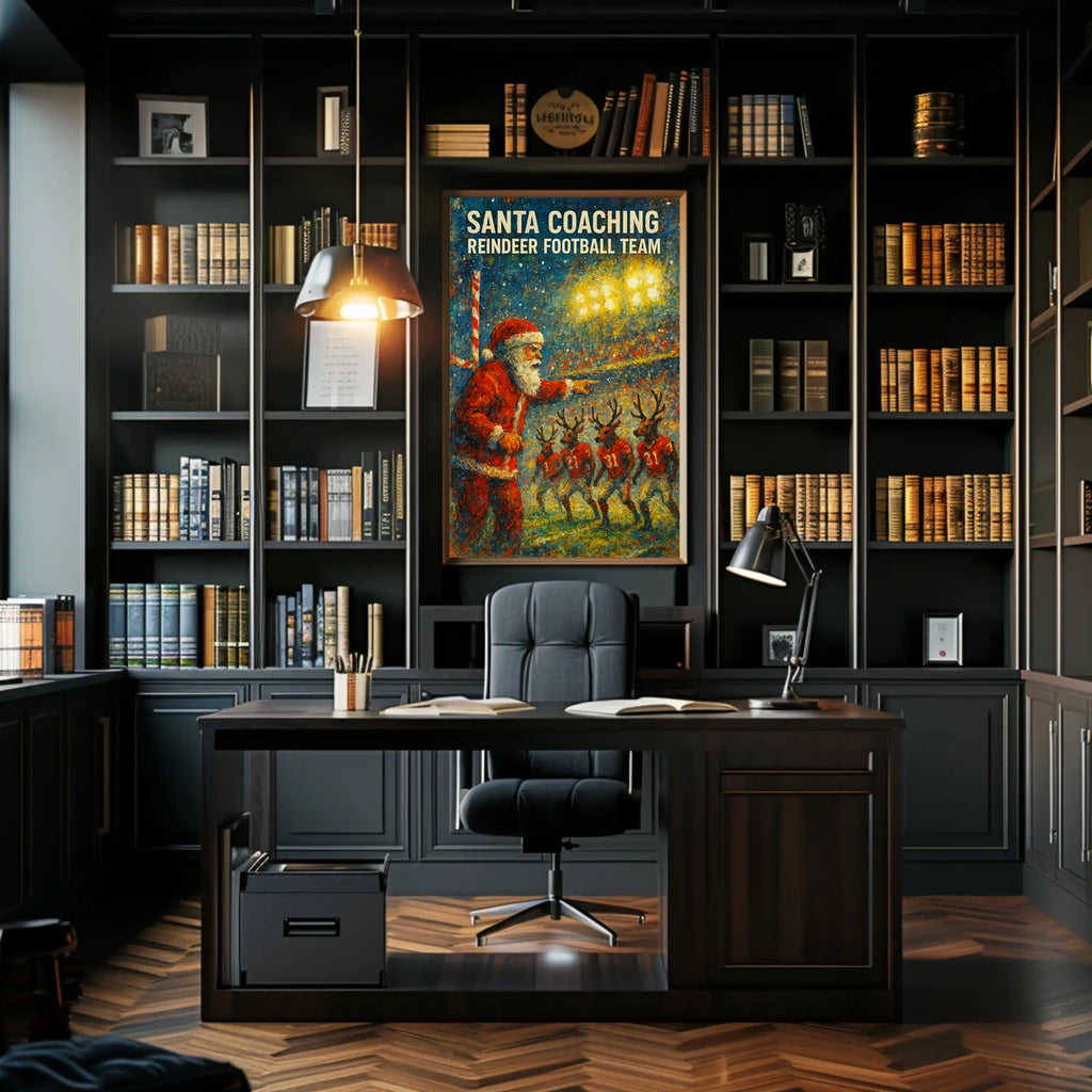 - Printed with precision and made to inspire, this artwork is more than decoration—it’s a conversation piece that connects Christmas magic with the excitement of football. Bring Santa's Reindeer Football Team into your home, classroom, or office today and let your walls tell a powerful story.