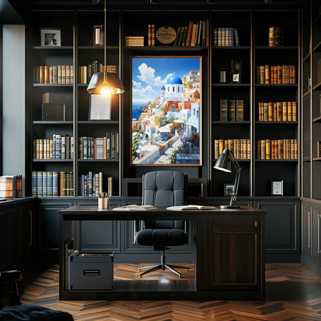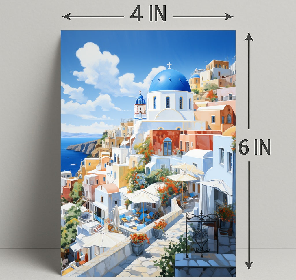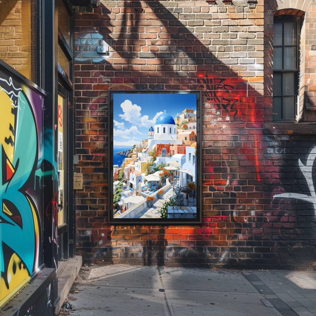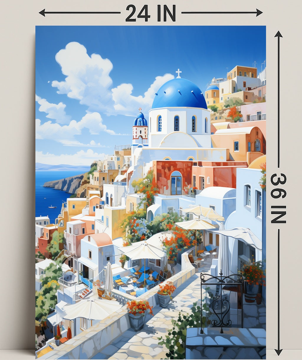 Stunning Visuals: The poster features vivid imagery inspired by the iconic blue domes and picturesque landscapes of Santorini, elevating your home decor.
