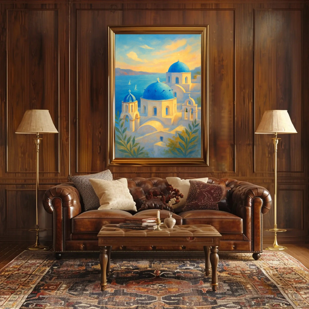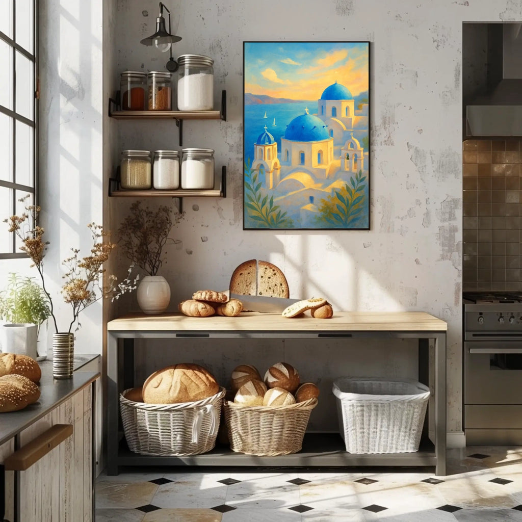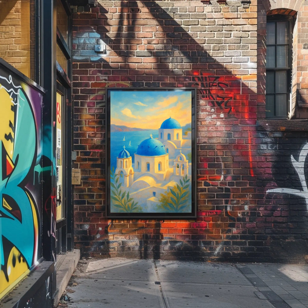 Transport your space to sunlit cliffs and azure seas with the Santorini Serenity Poster. This art print captures the calm, sun-kissed charm of the Aegean, making any room feel brighter and more inviting for decor lovers and wanderlust spirits alike.