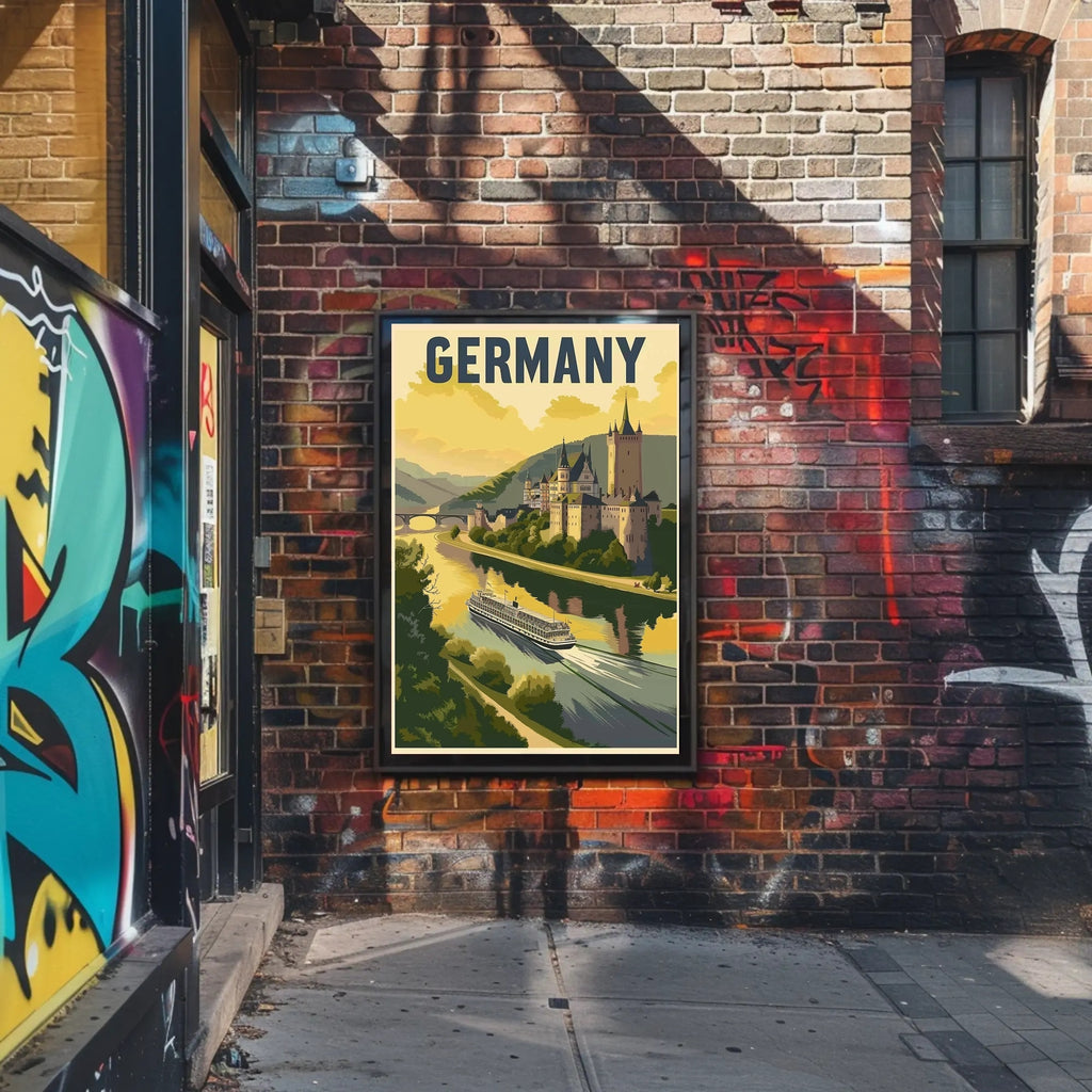 Bring a little European wanderlust home. Add the Scenic German Castle River View Vintage Travel Poster by PosterGoat to your cart today and transform your space with classic travel art that invites stories and inspires exploration.