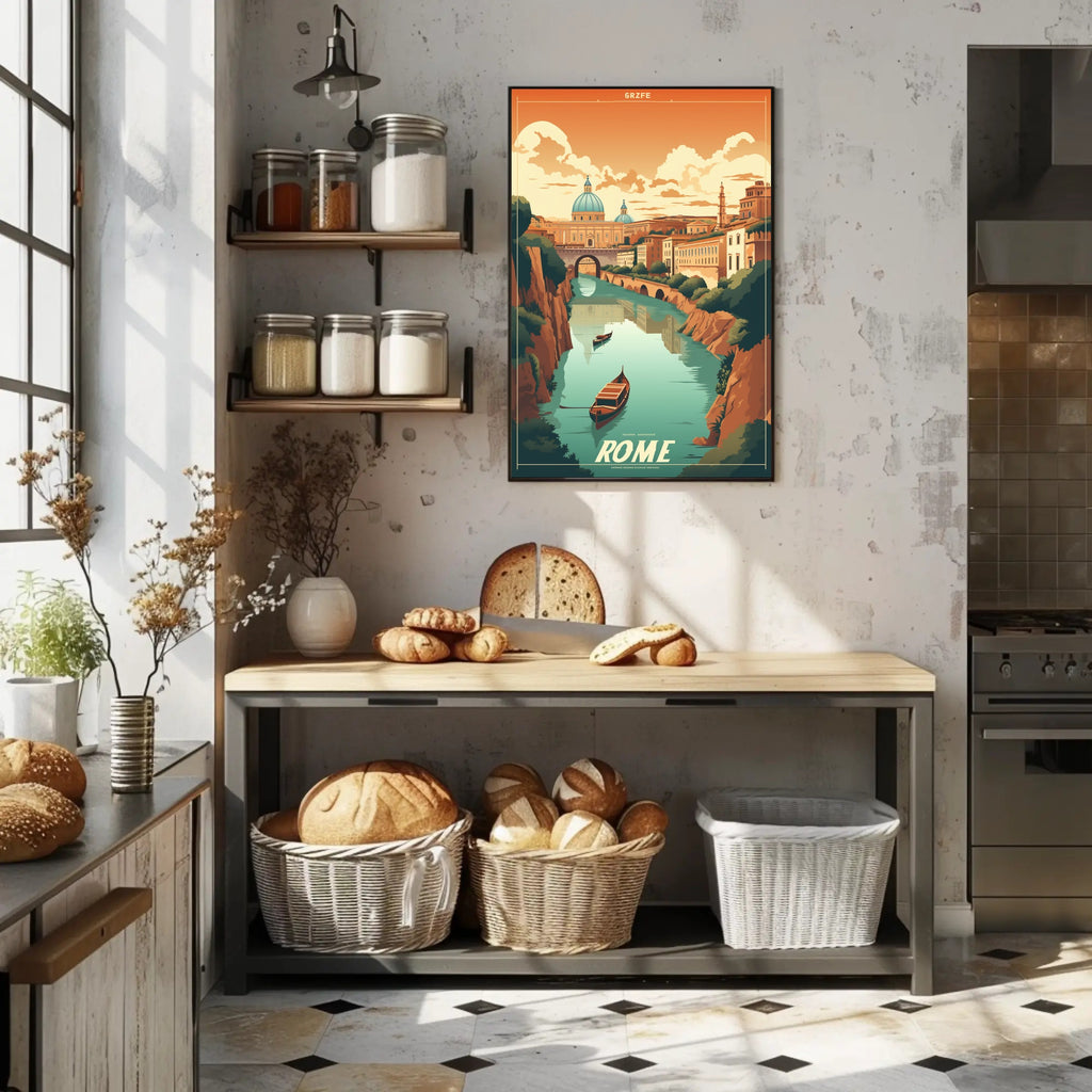 Bring home a timeless view of Rome — add the Scenic River View in Rome Travel Poster to your cart from PosterGoat today.