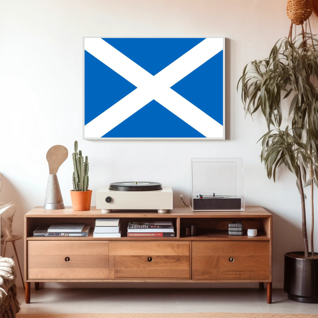 Bring national identity and contemporary design into your space with the Scottish Saltire Flag Poster from PosterGoat — order now to add a timeless symbol of Scottish heritage to your walls.
