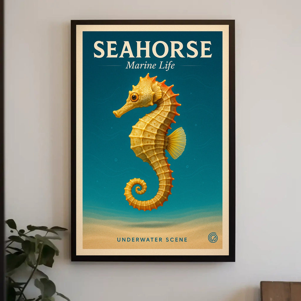 Bring a splash of ocean charm to your walls with this Seahorse Marine Life Poster. It blends watercolor warmth with a contemporary digital painting feel, capturing the whimsy of seahorses and the quiet drama of underwater scenery. Perfect for decor lovers and wanderlust-filled spaces, it's an easy way to add character to any room—whether you’re decorating a living space, bedroom, or home office with a touch of coastal calm.