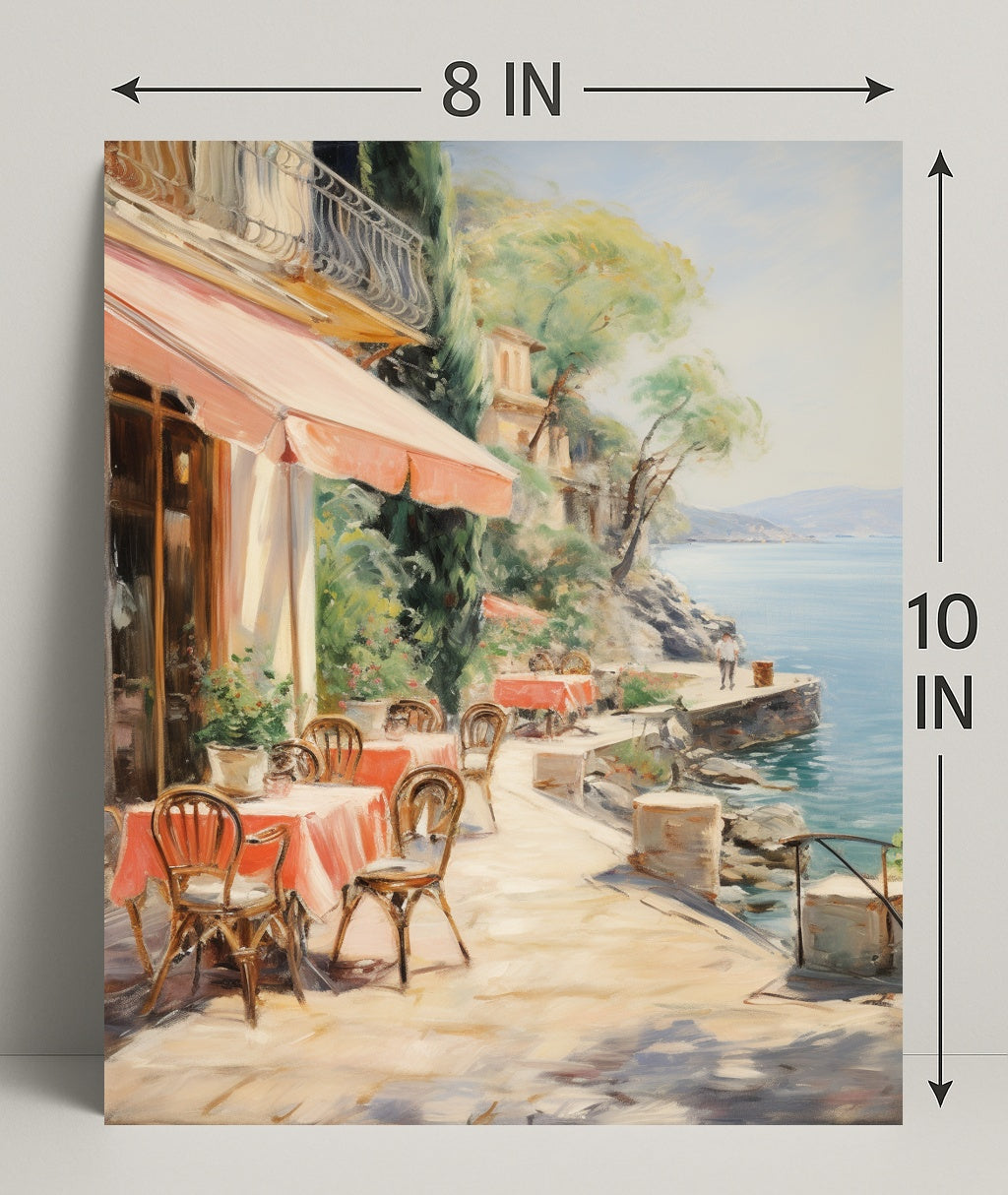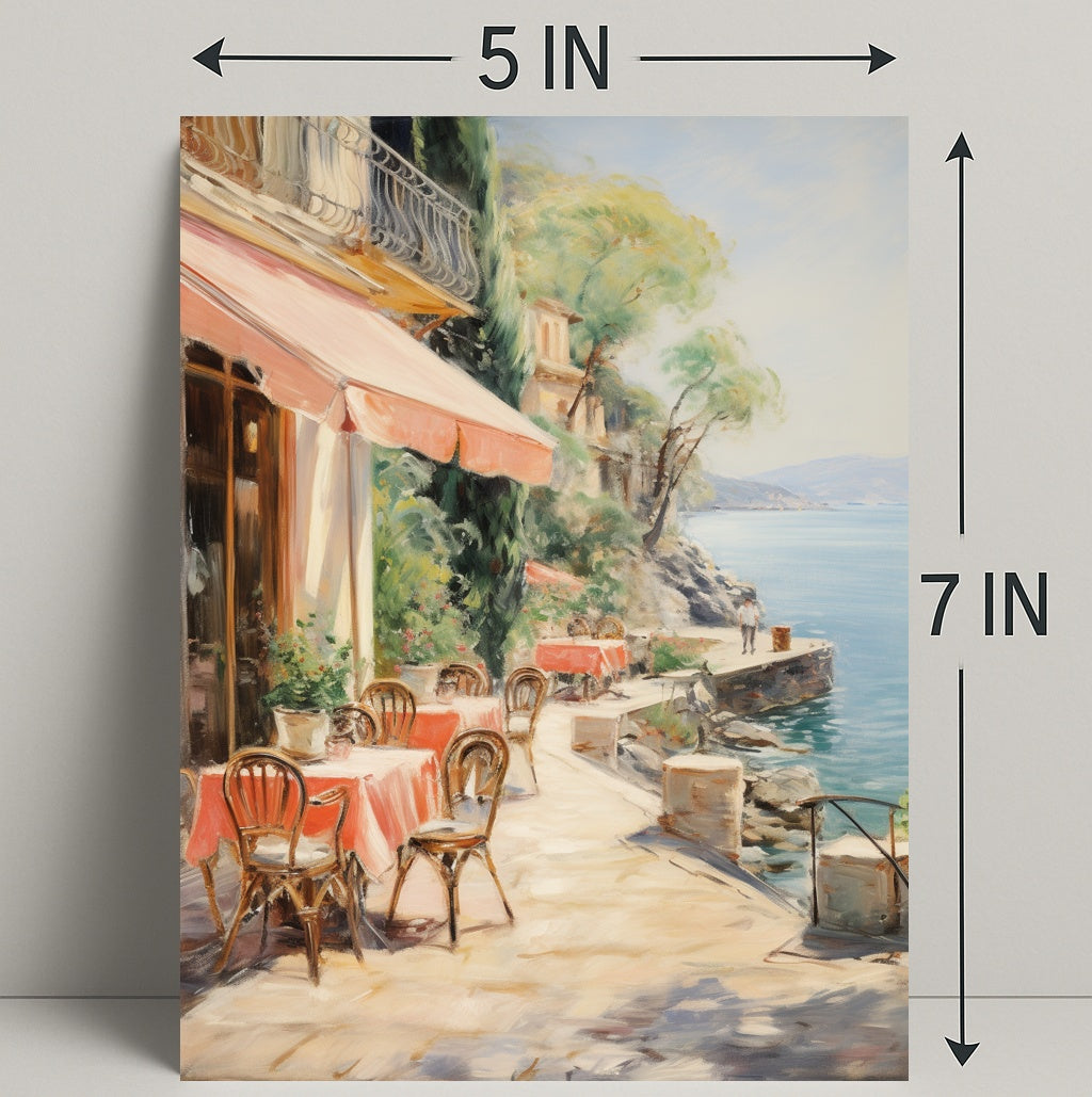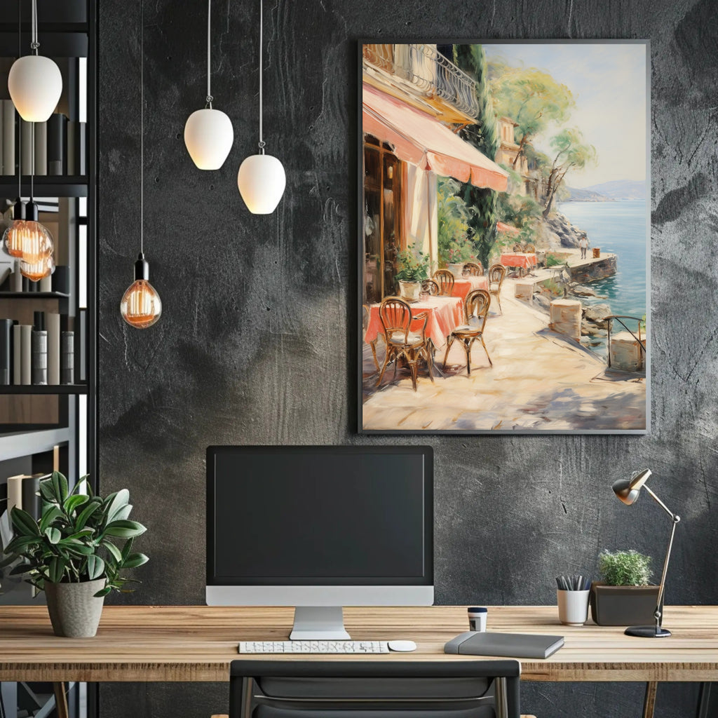 Invite seaside serenity into your space — order the Seaside Café Serenity Poster from PosterGoat today and transform any wall into a window to the coast.