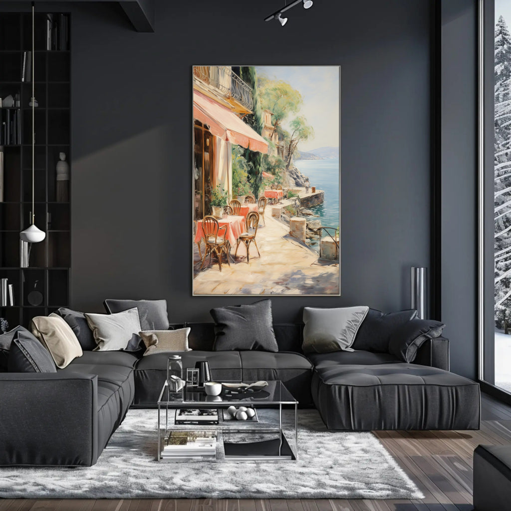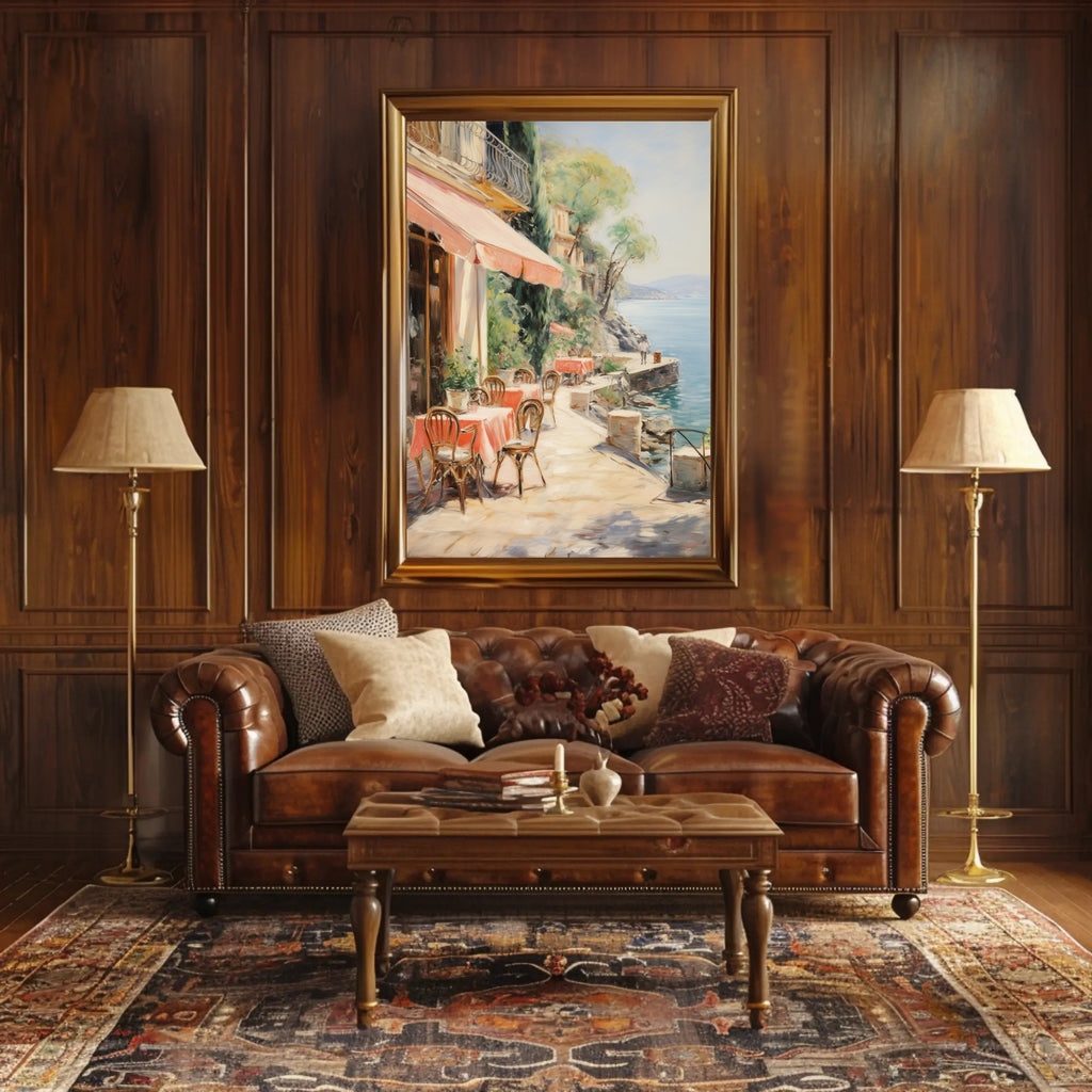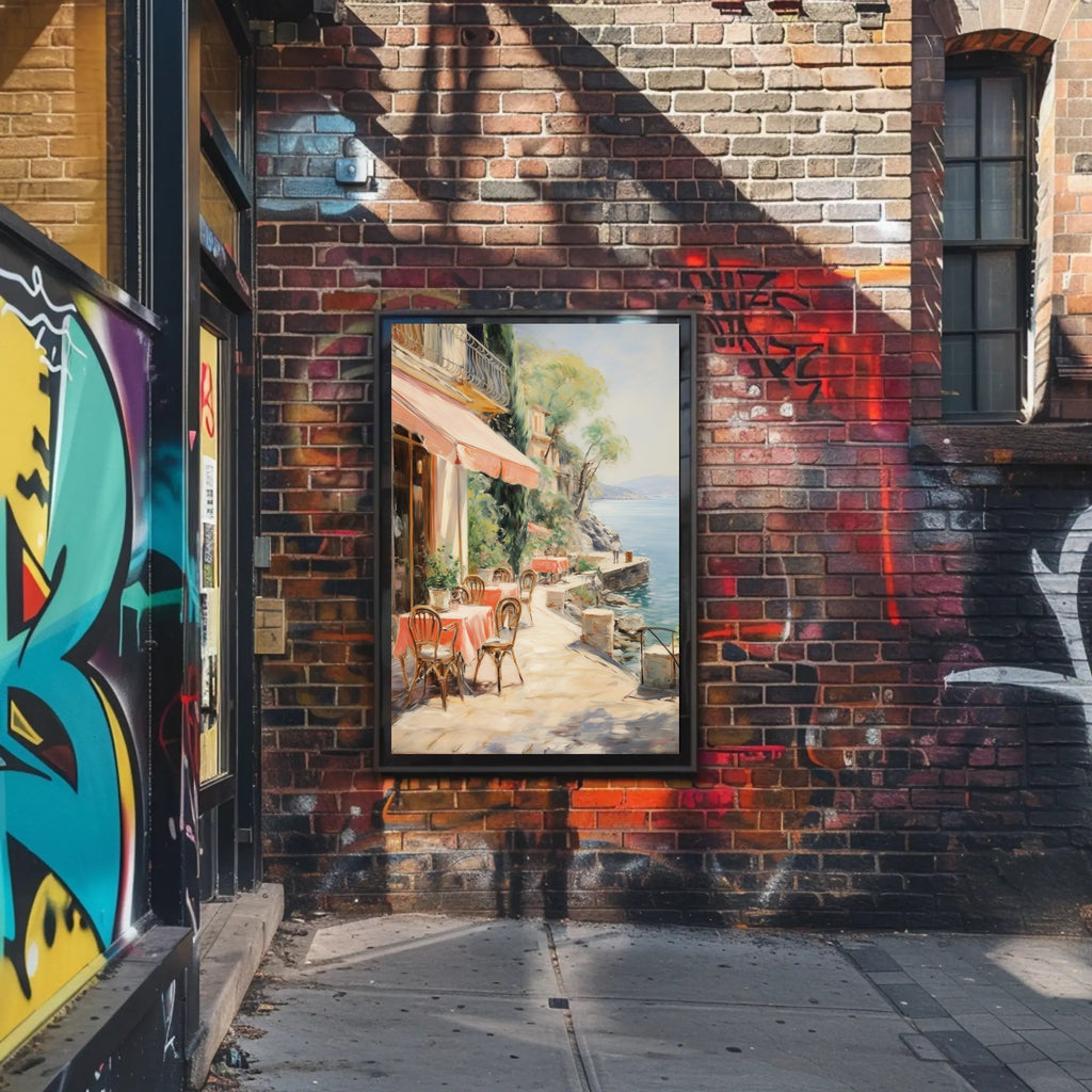 Invite seaside serenity into your space — order the Seaside Café Serenity Poster from PosterGoat today and transform any wall into a window to the coast.