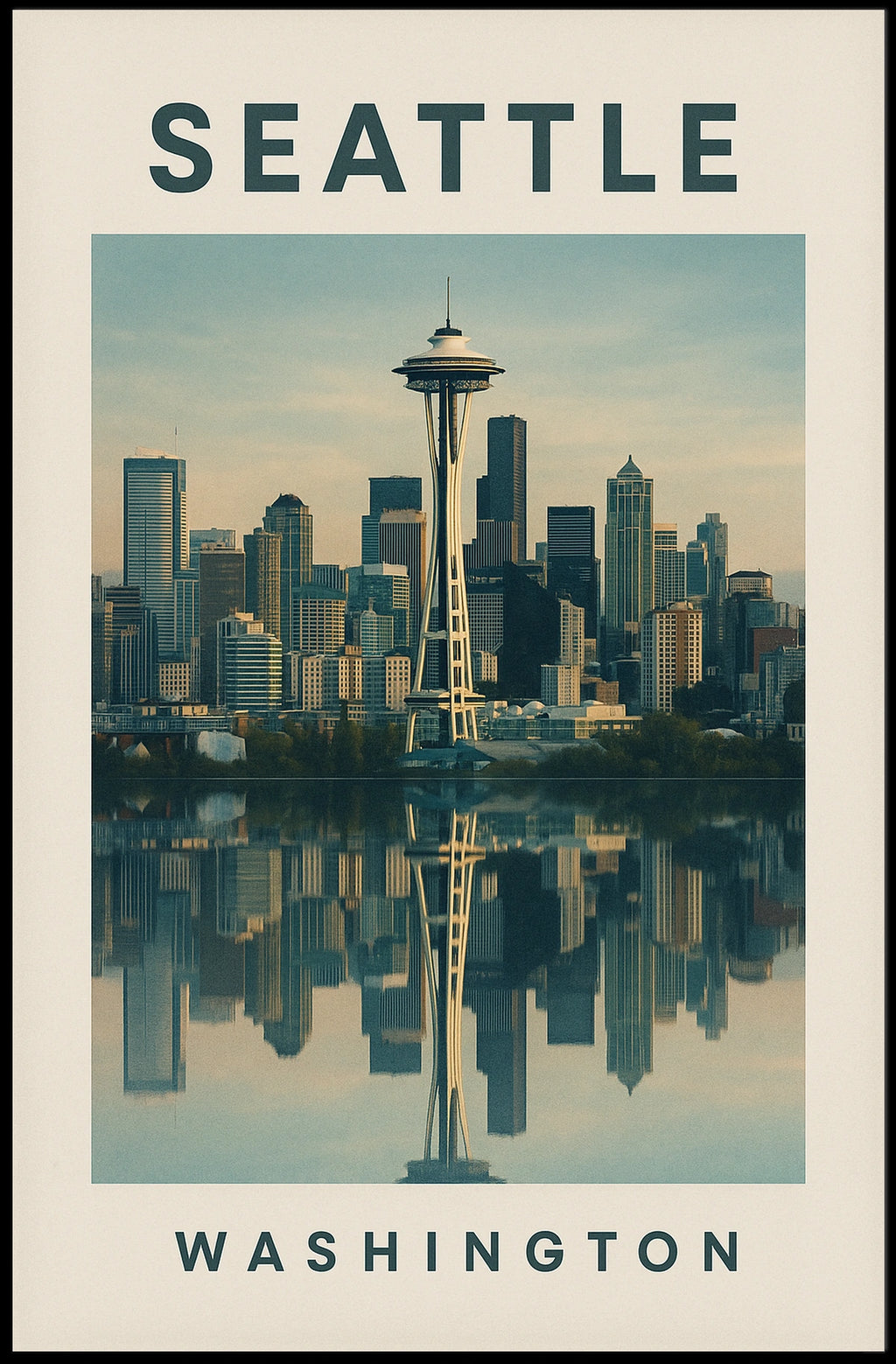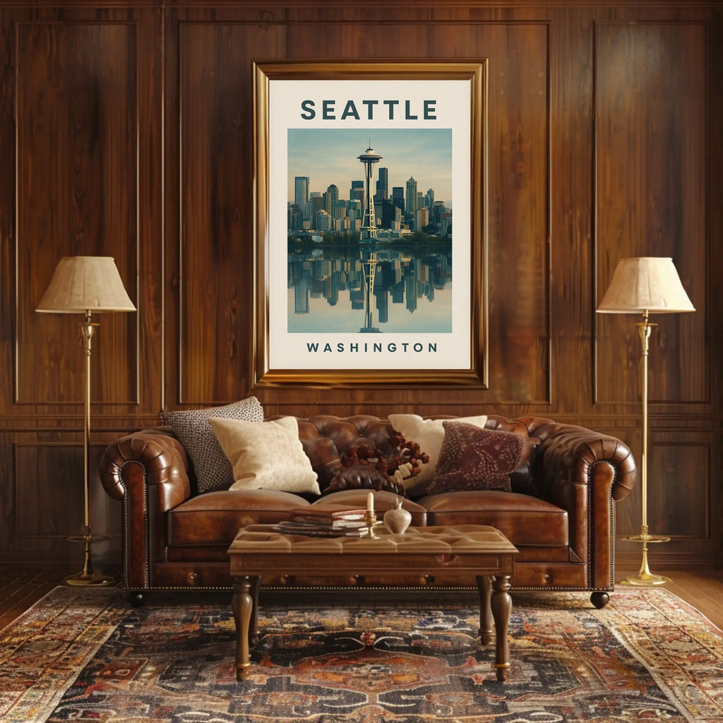 - Detailed design capturing the Seattle skyline silhouette and iconic landmarks