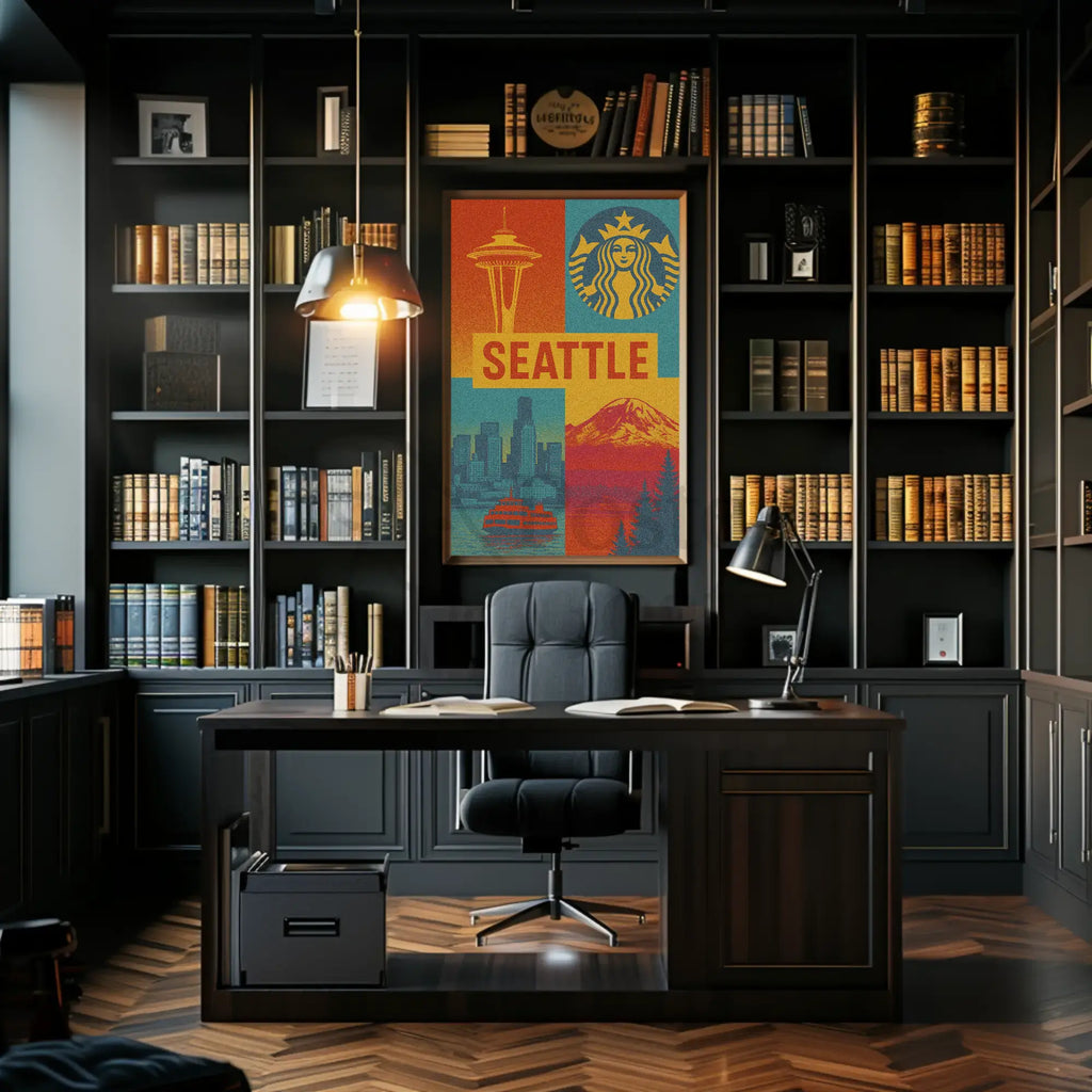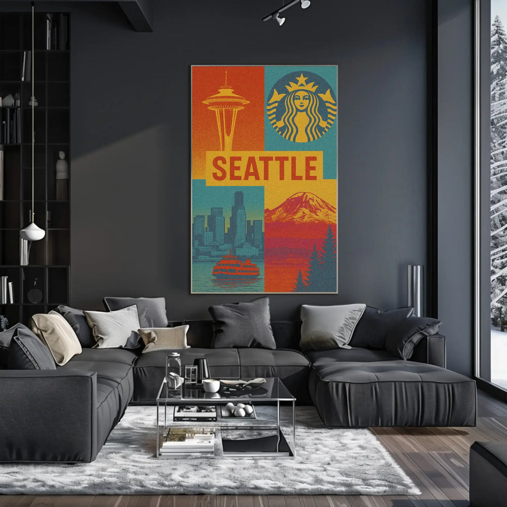 - High-quality print: Pop Art / Vintage Seattle aesthetic with a textured finish that looks great framed or unframed in living rooms, offices, cafés, or entryways.