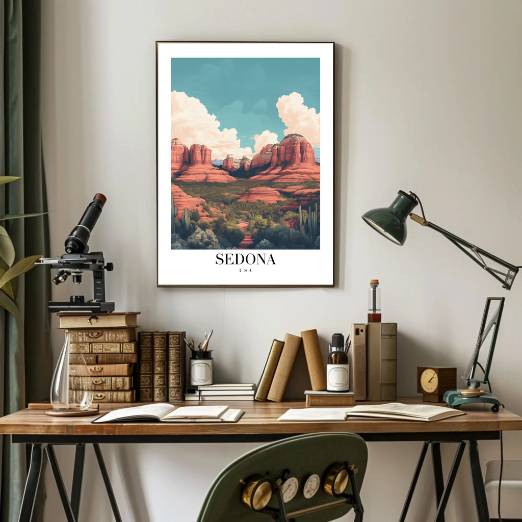 Printed with rich, fade-resistant inks to preserve the poster’s vibrant colors and fine illustrative detail, this Sedona travel print transforms any room into a scenic getaway. Add a touch of iconic Arizona landscape and sophisticated travel art to your collection — order the PosterGoat Sedona Red Rock Scenic Modern Illustrative Travel Poster today and frame your next adventure.