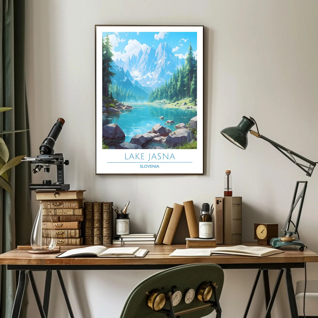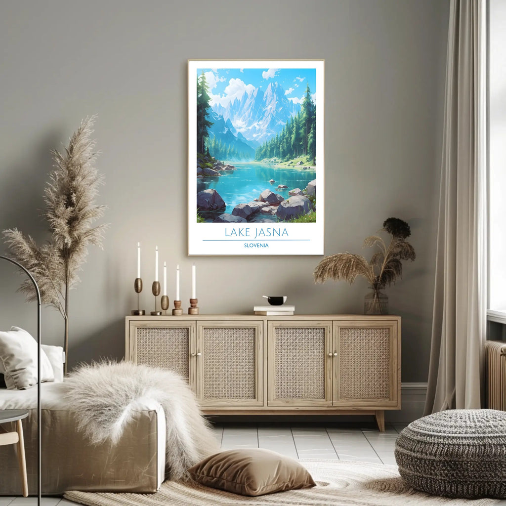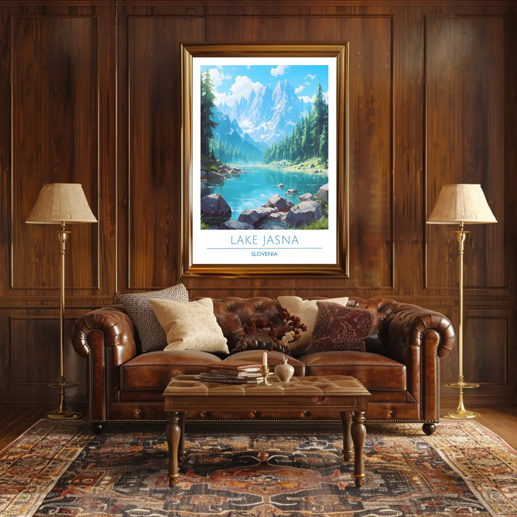 This travel poster captures the essence of Serene Beauty of Lake Jasna. Designed for decor lovers and wanderlust spirits, this art print adds charm to any room with visuals inspired by real-world scenery.