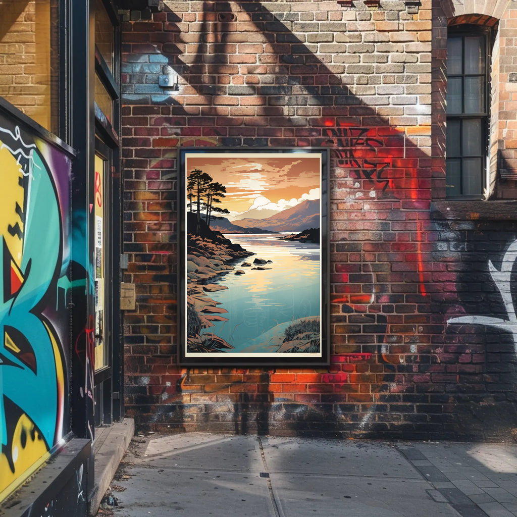 This lakeside poster not only enhances visual appeal but also promotes a soothing atmosphere—perfect for anyone seeking peaceful artwork or a lakeside poster to complete their collection. Hang it framed or unframed to introduce natural beauty and reflective calm into your space.