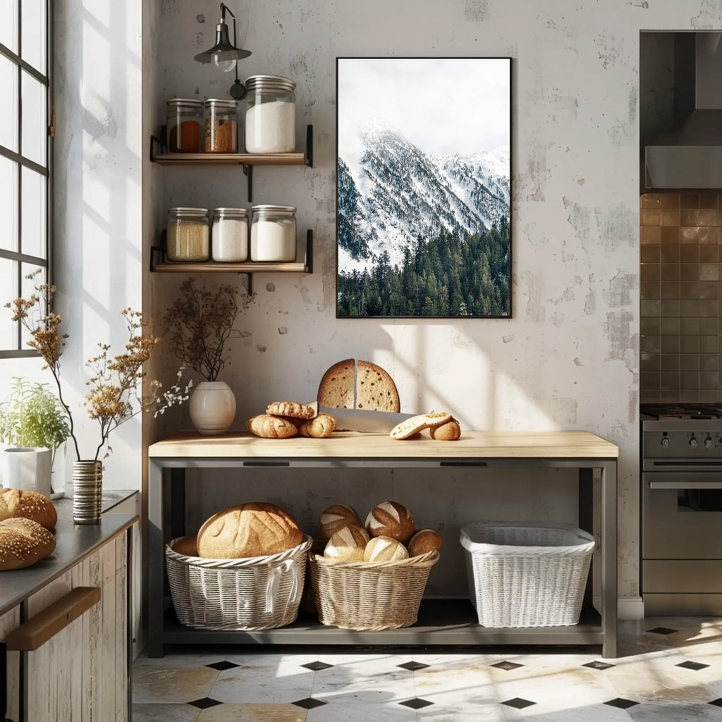 Experience the tranquil beauty of Serene Winter Landscape Photorealistic National Park Poster. This stunning poster captures the serene majesty of snow-covered mountains and the contrasting dark coniferous trees, portraying the resilience and tranquility of nature. The lush green forest in the foreground enhances the breathtaking wintry peaks, creating a peaceful yet striking scene. Perfect for nature enthusiasts or anyone seeking a calming visual escape, this poster showcases nature's grandeur with sharp clarity. Its high-detail design offers an immersive window into an idyllic, pristine landscape.