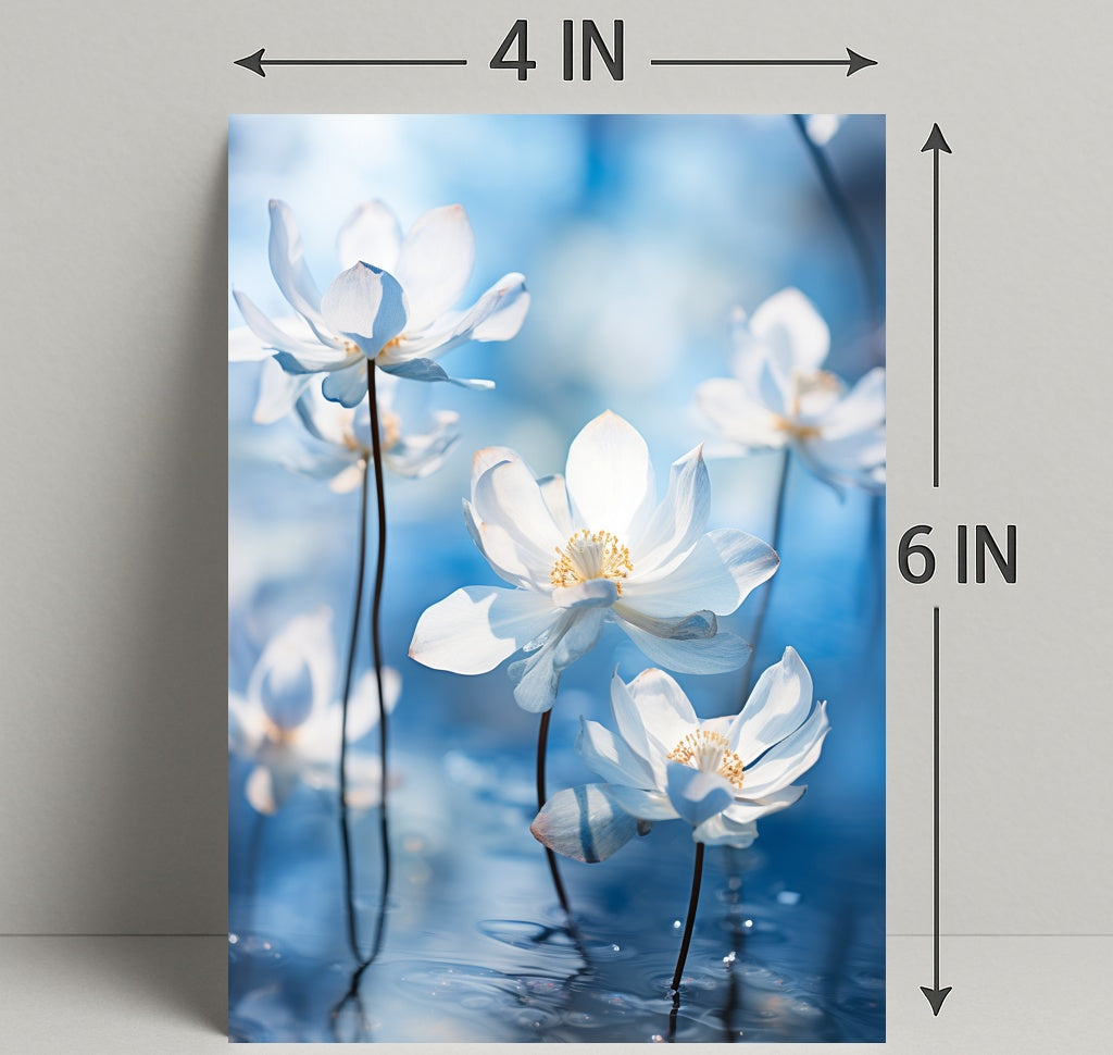 Bring a moment of calm to any room with the Serenity In Bloom Poster from PosterGoat. This artful poster captures delicate white blooms floating above reflective water against a soft, dreamy blue bokeh background — a minimalist, scenic composition designed to soothe and inspire.