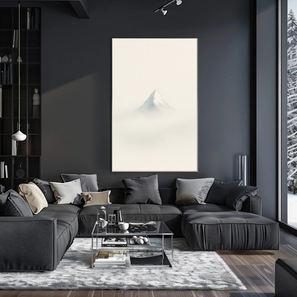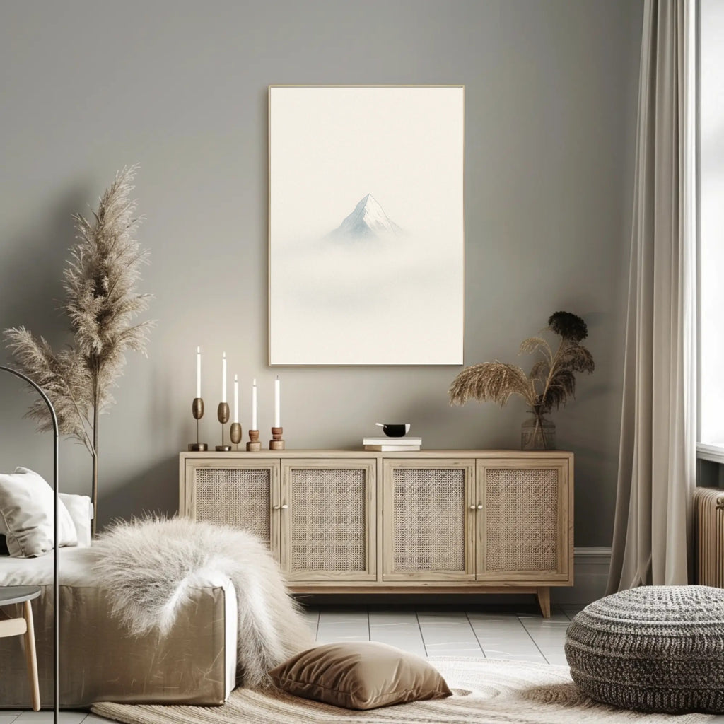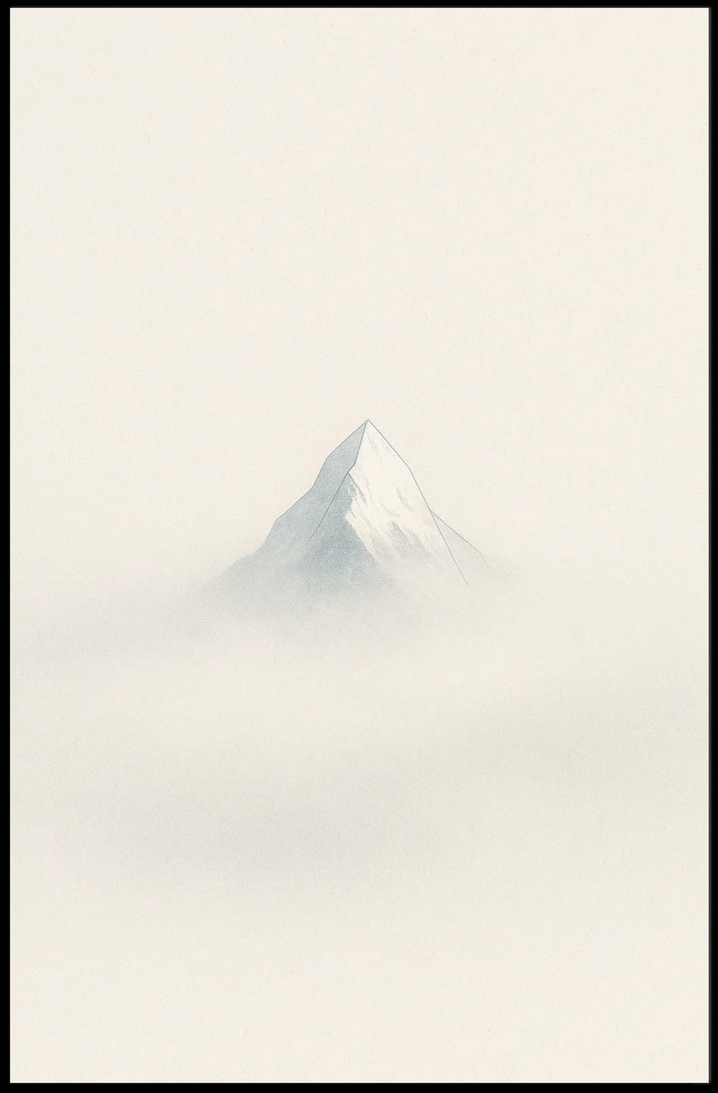 Serenity in the Mist by PosterGoat is a minimalist landscape poster that brings a calm, contemplative mood to any room. Soft, airy mist surrounds a solitary mountain peak rendered in delicate tones — a design that pairs beautifully with modern, Scandinavian, and serene artwork collections.