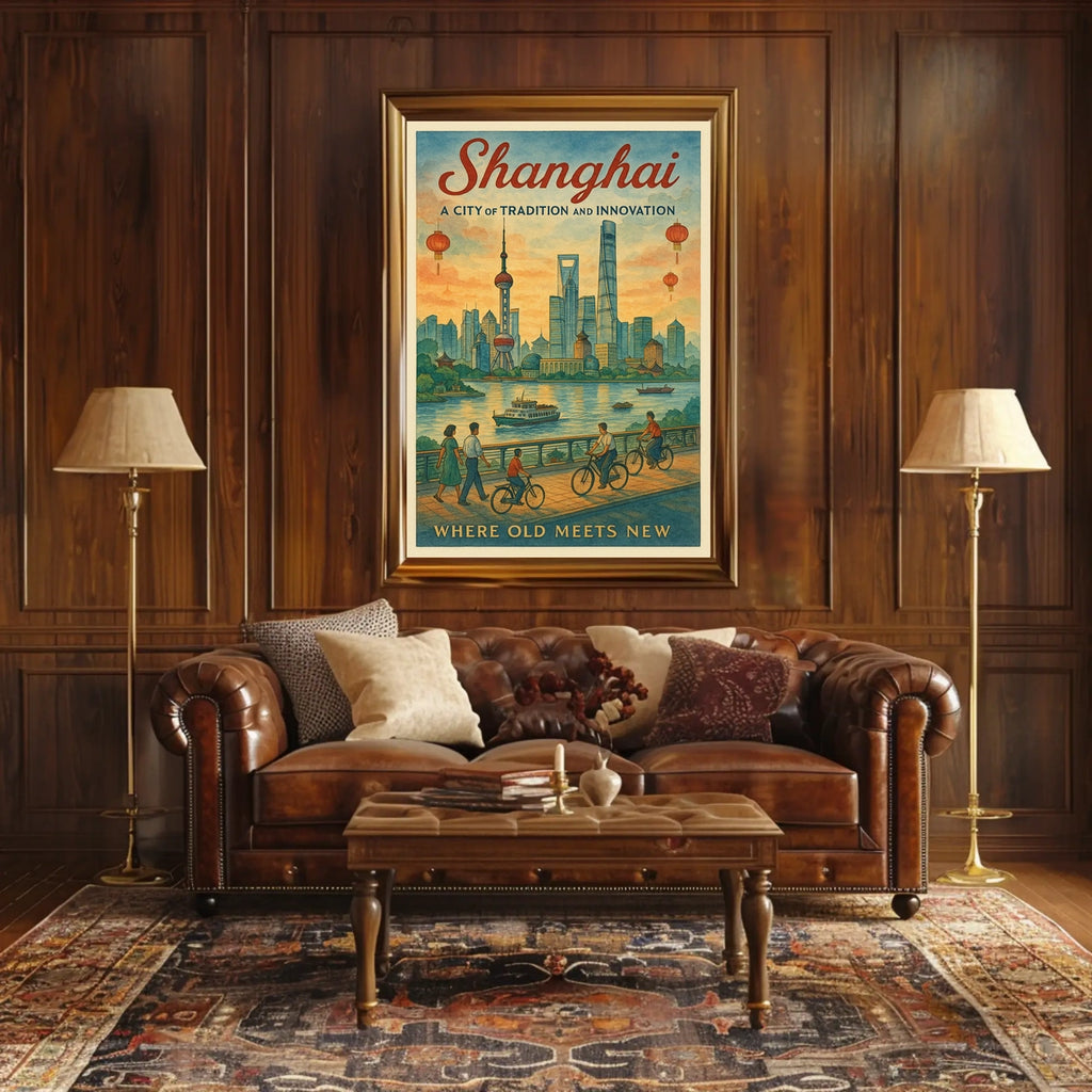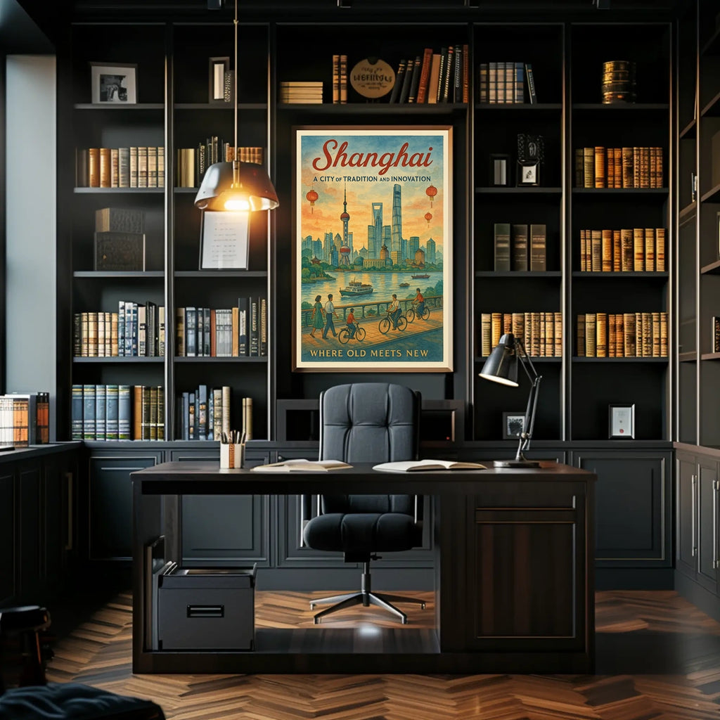 Experience Shanghai's vivid blend of tradition and innovation with this poster. Designed for decor lovers and wanderers, it brings a dynamic cityscape into any room, adding charm to living spaces, offices, and studios while inviting curiosity.