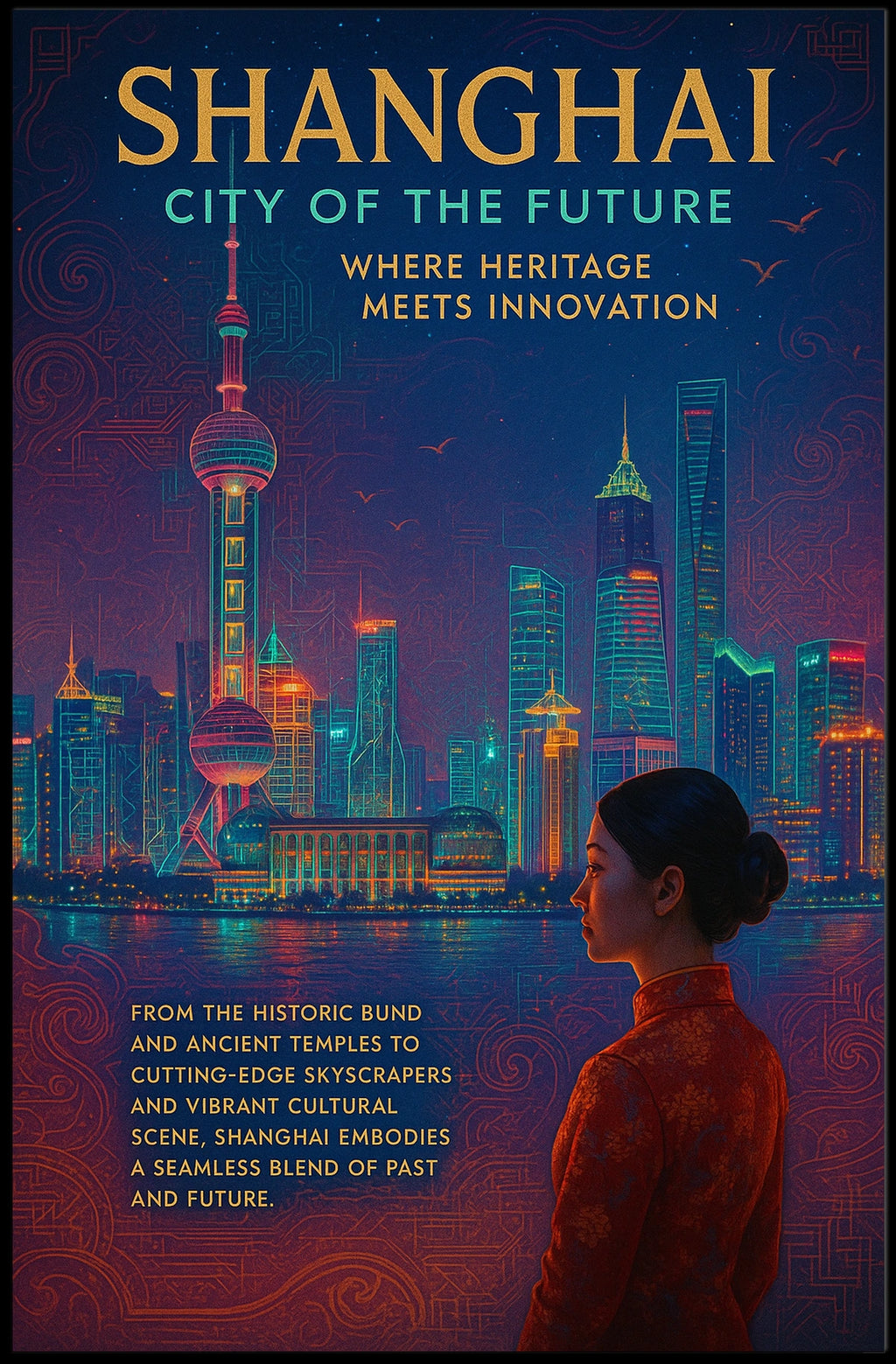 Capture the essence of Shanghai's futuristic vision with this striking poster. Designed for decor lovers and wanderlust spirits, it brings a cosmopolitan vibe and dreamlike skyline to any space.