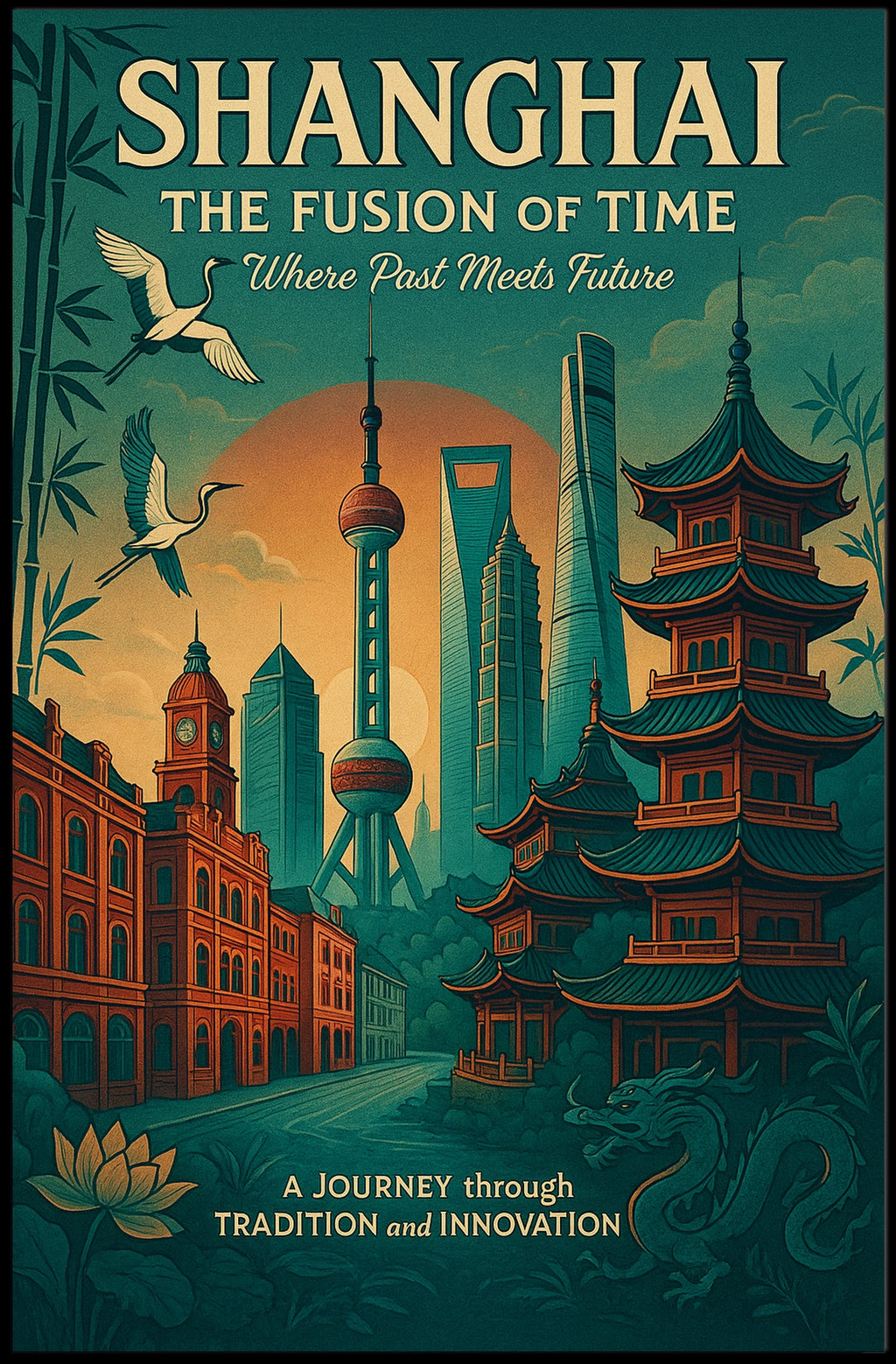 Shanghai The Fusion of Time Poster captures the heartbeat of one of the world's most dynamic cities. Designed for decor lovers and wanderlust spirits, this art print blends iconic skylines with dreamlike textures to create a vivid, uplifting focal point in any room.